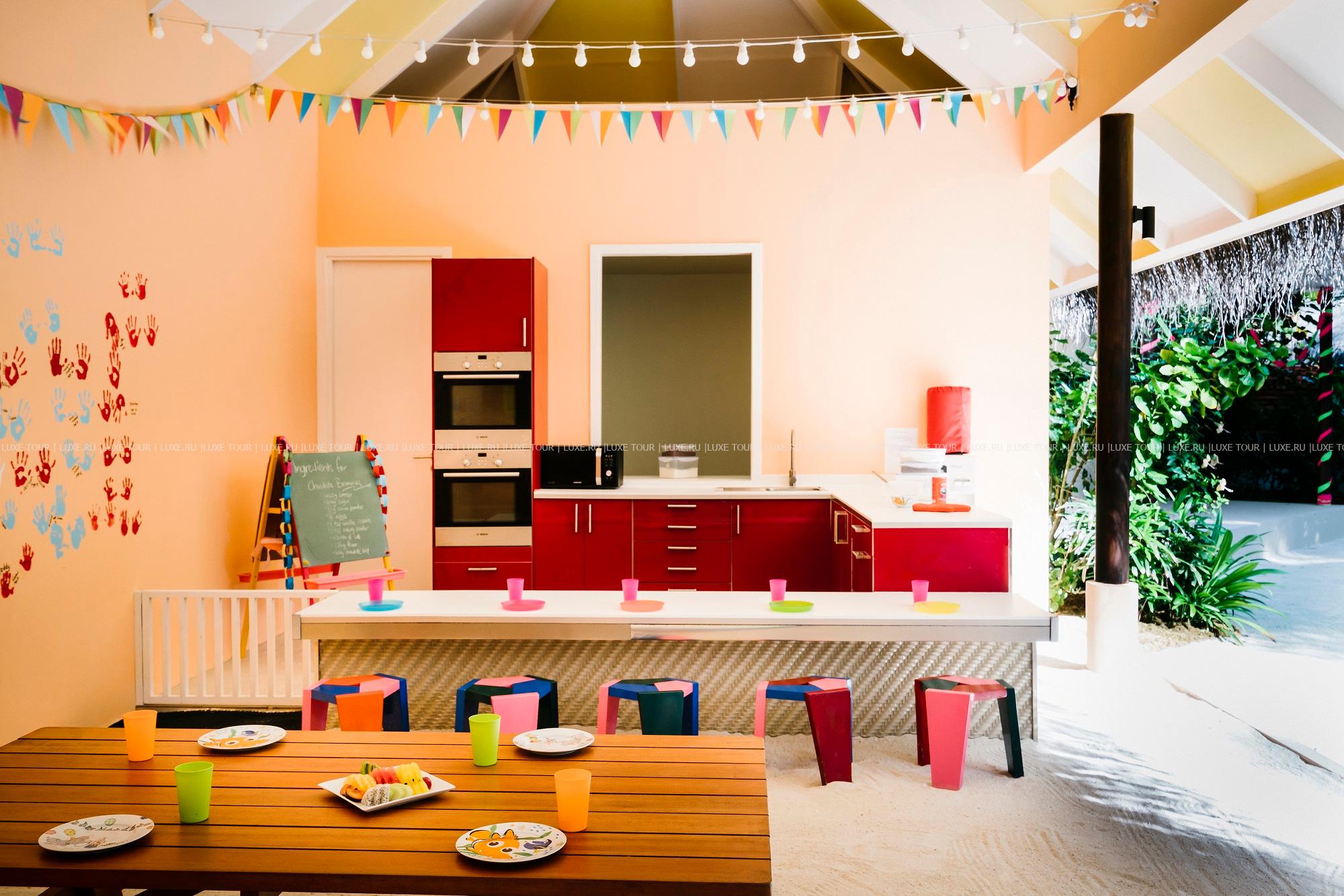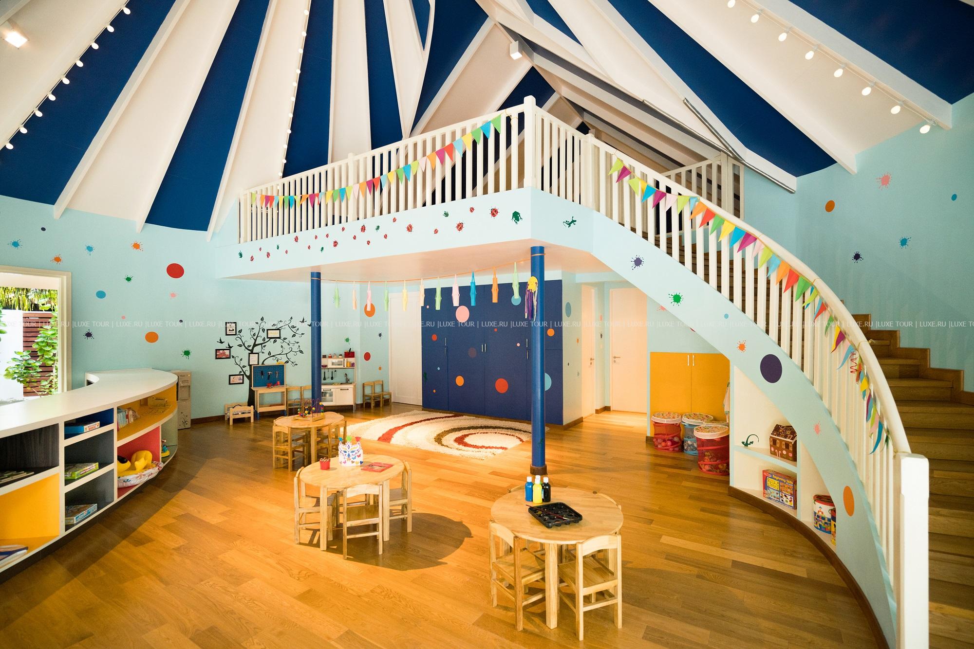 Занятия для детей распределены на несколько возрастных групп, включая малышей: до 12 мес. - специальный уход и забота о малышах, предоставляется специальная комната в тихом месте для дневного сна и отдыха малышей под присмотром няни; от 1 до 2 лет - активности, знакомящие детей с миром искусства, музыкой и природой; от 3 до 4 лет - детям предложат развлечения в виде охоты за крабиками, игры на местных барабанах боду беру и купание в бассейне под присмотром воспитателя; от 5 до 13 лет - детям предложат каякинг, круиз с дельфинами, путешествия по острову, мастер-класс по приготовлению пиццы, мини- олимпийские соревнования, теннис, пляжный крикет, футбол, дизайн футболок, занятия в центре с морским биологом и квесты по поиску сокровищ.