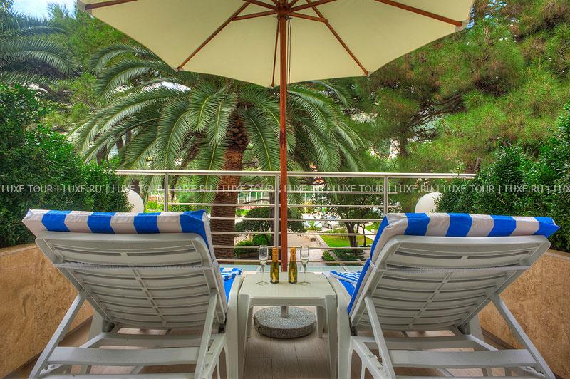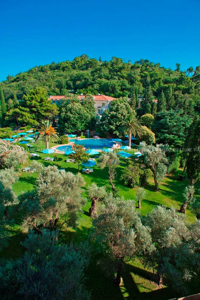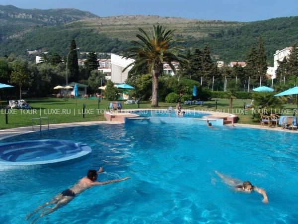 Отель находится в сосновом бору площадью 8400 кв.м, в 50 м от пляжа. Рядом набережная г. Петровац с ресторанами, магазинами, барами. Территория очень зеленая - сосны, пихты, эвкалипты, выстриженные и не огороженные газоны. К центральному пляжу Петроваца ведет дорожка. Также, в пешей доступности расположен пляж «Лучица».