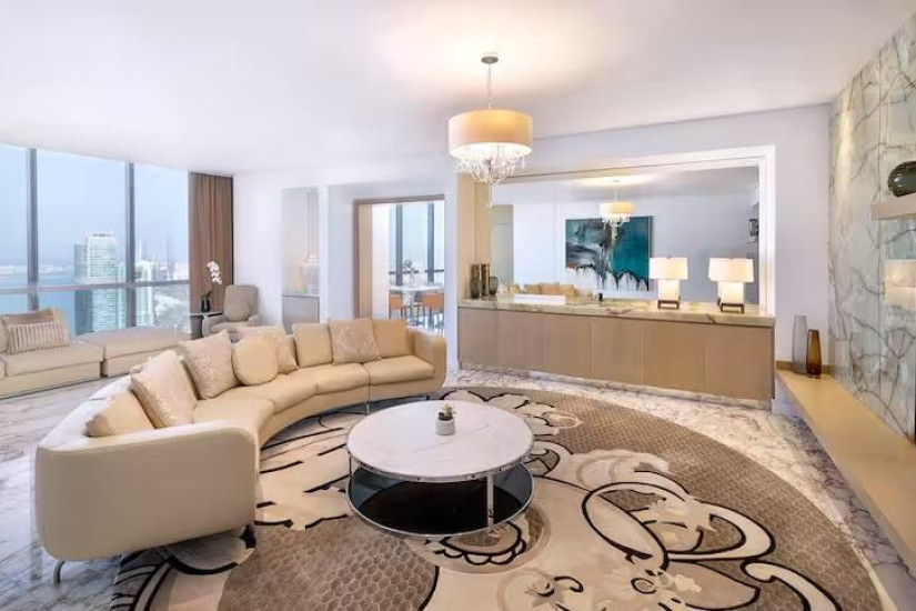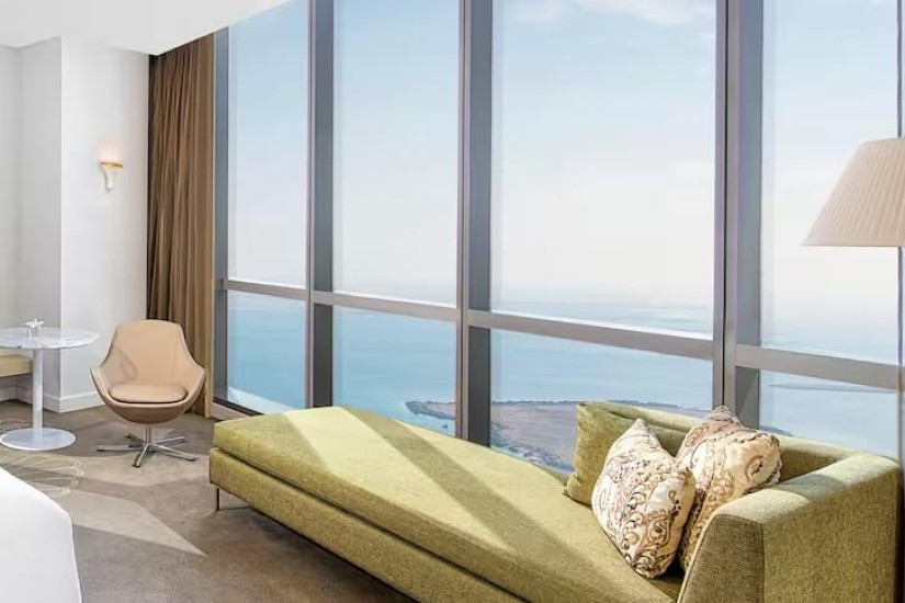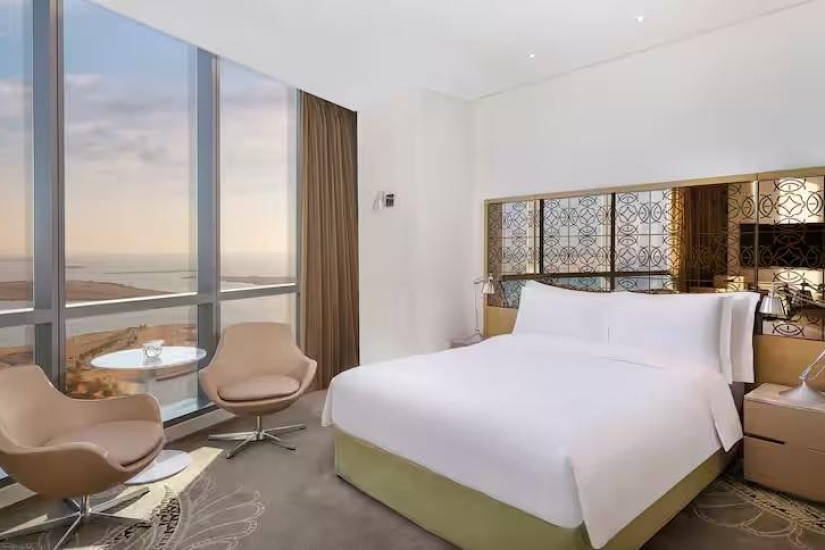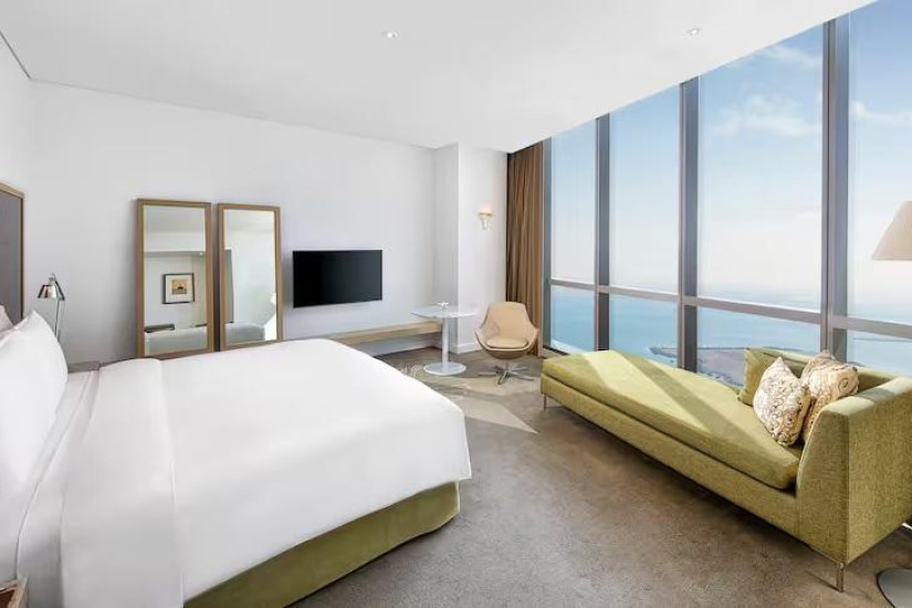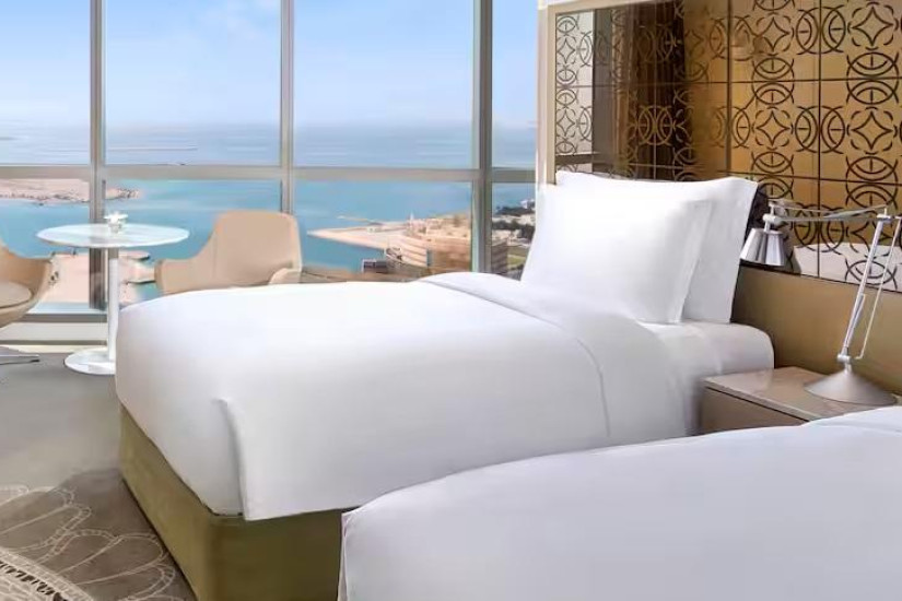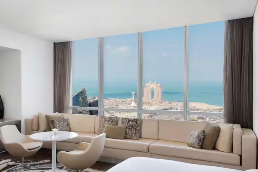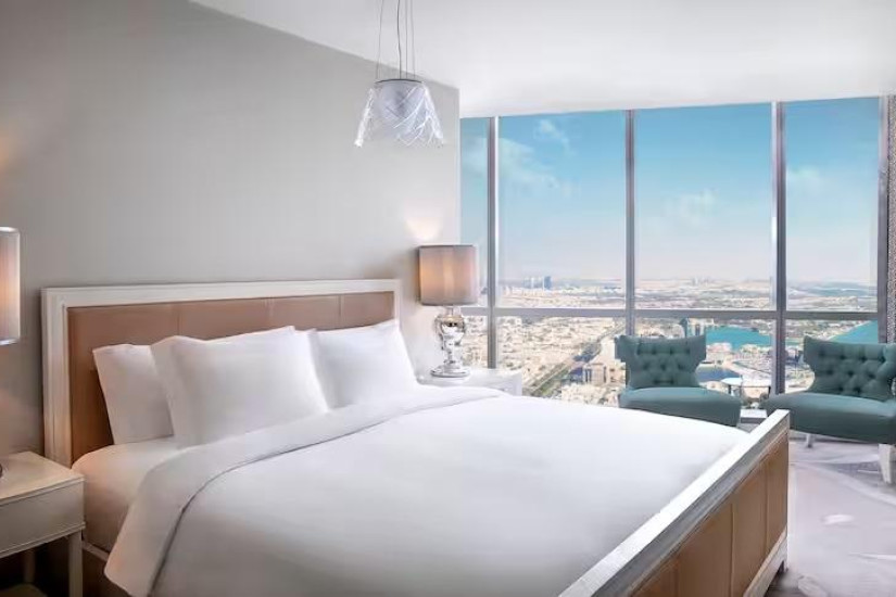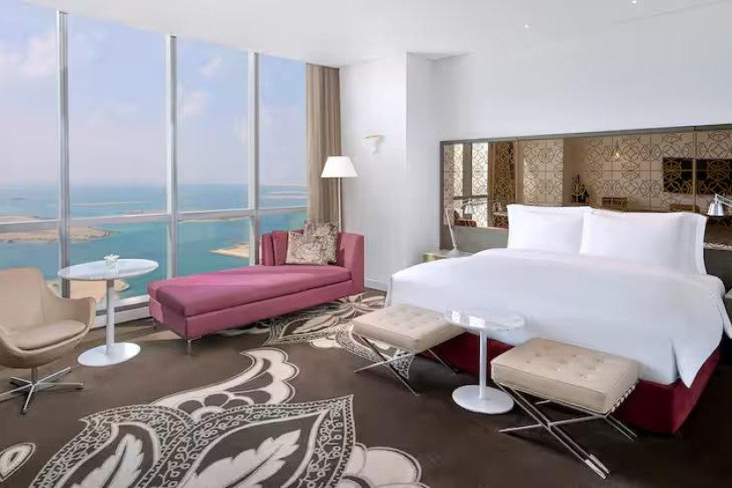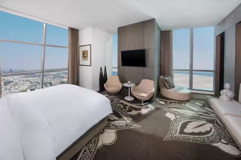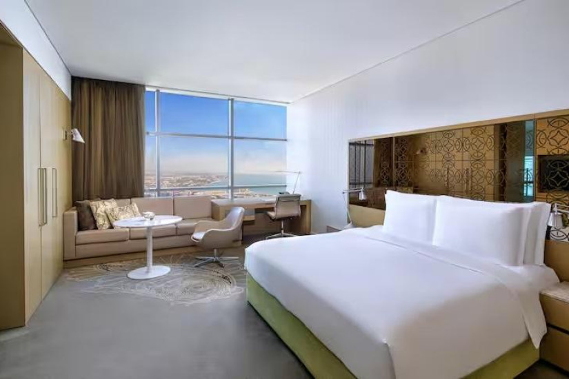 - В отеле номера различных категорий. Интерьеры номеров сочетают стильный современный дизайн и изысканную роскошь в арабских традициях, из панорамных, во всю стену окон номеров открываются потрясающие панорамные виды на город, набережную и воды персидского залива. Также отель располагает клубными номерами, гостям которых предлагаются дополнительные услуги.
