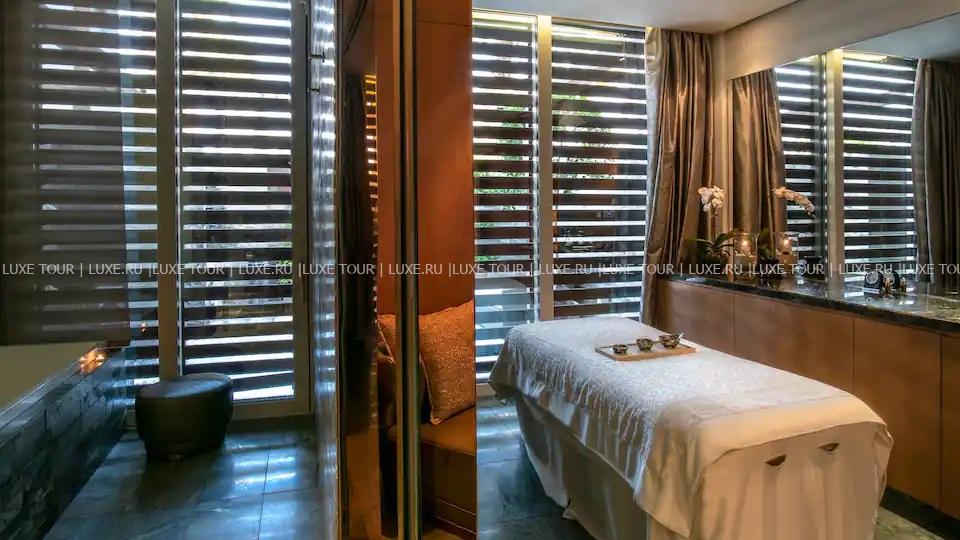 Отель располагает великолепным спа-центром с несколькими процедурными кабинетами, где предлагается широкий спектр услуг для тела и лица, также есть сауна, парная, гидомассажная ванна, фитнес-зал.