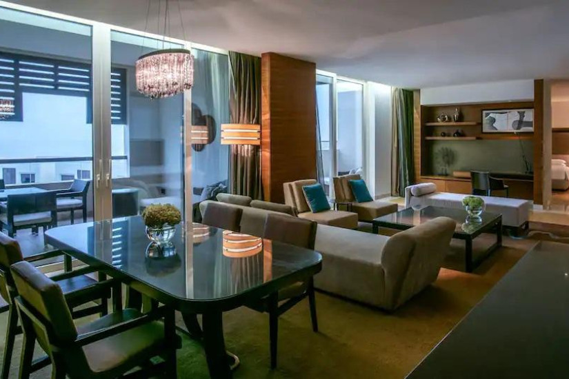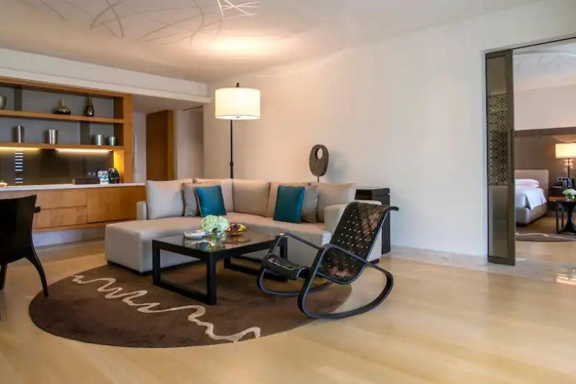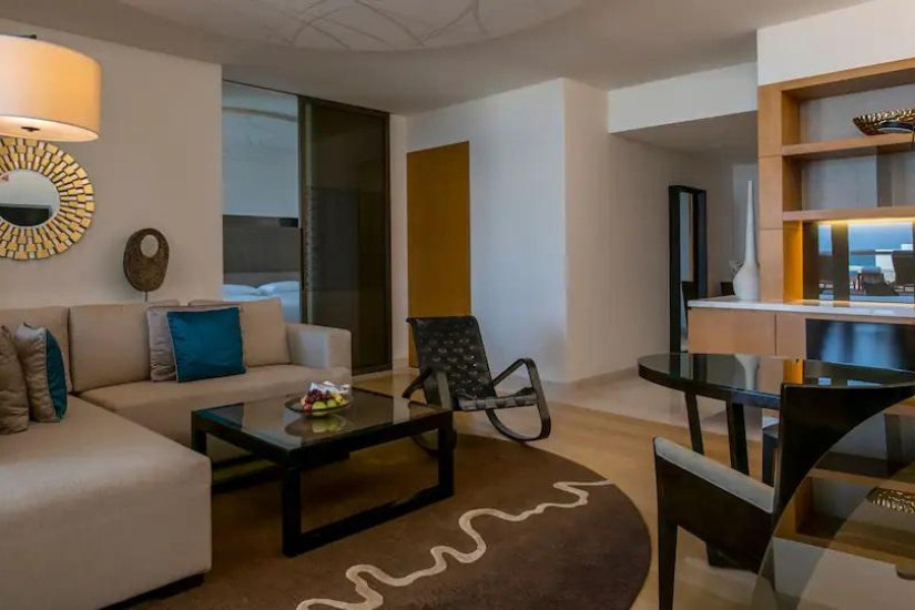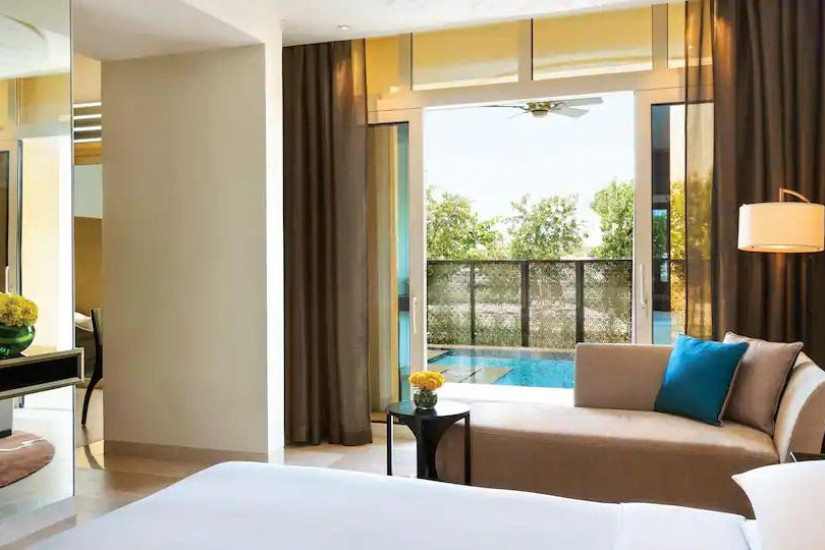 - В отеле номера различных категорий. Номера сочетают шикарный современный дизайн и изящную роскошь арабского стиля: отделка из ценных пород дерева и мрамора, элегантная мебель, ажурные резные решетки. Во всех номерах – зоны отдыха и просторные ванные комнаты открытого плана. С балконов номеров открываются изумительные виды на белоснежные пляжи, лазурные воды залива и живописные ландшафты острова. Виллы также располагают собственными открытыми бассейнами.