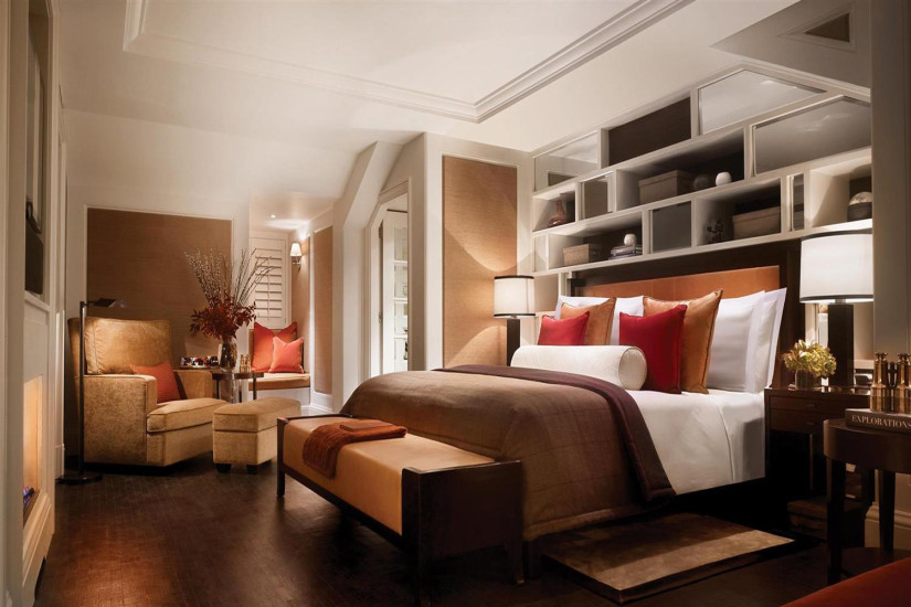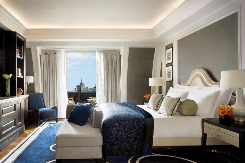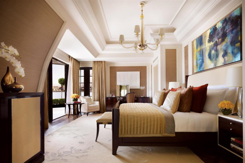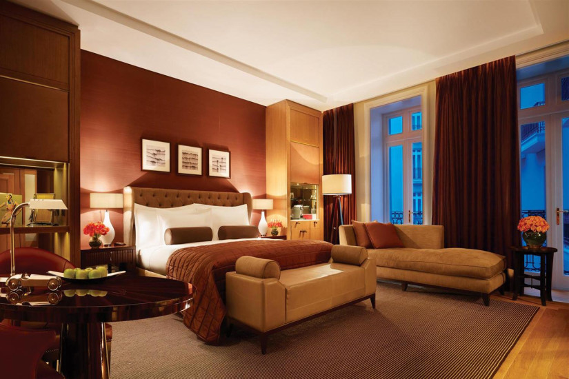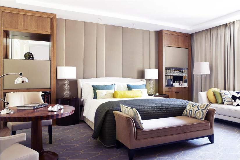 - 45 м2. Состоит из спальни с кроватью king-size или двумя кроватями twin, гостиной зоны, гардеробной (в некоторых номерах), просторной ванной комнаты с ванной, душем и телевизором, французского балкона с видом на город или внутренний двор отеля.