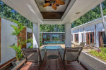 410 м2. Состоит из спальни с кроватью king-size, гостиной, мини-кухни, ванной комнаты, меблированной террасы, бассейна. Вид на пляж. Максимальное размещение — 3 человека.