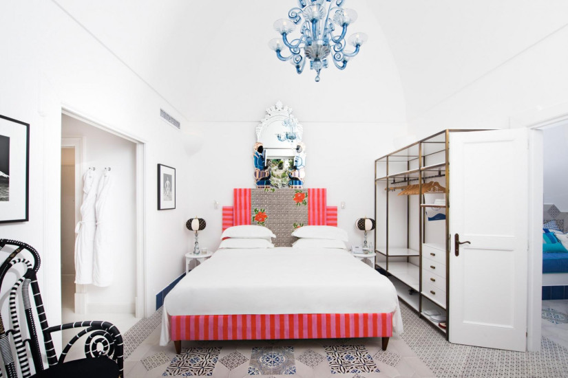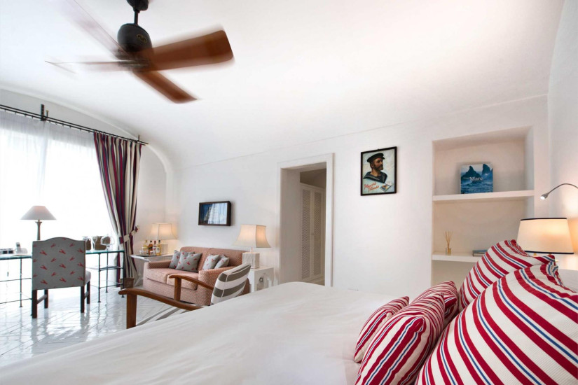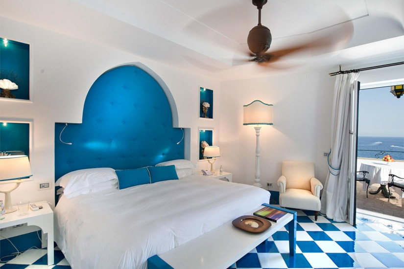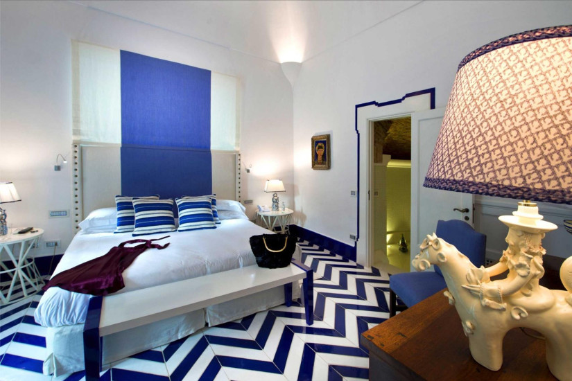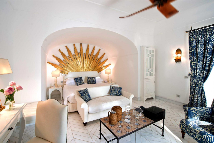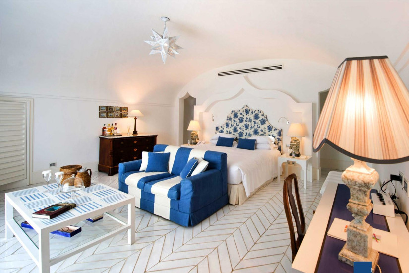 - номер оформлен в средиземноморском стиле. В декоре интерьера присутствует большое разнообразие голубых оттенков и арабских мотивов, типичных для Позитано. Необычайно теплая атмосфера в номере создается благодаря многочисленным произведениям искусства. Состоит из спальни с зоной отдыха, ванной комнаты, террасы с выходом в сад.
