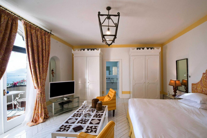 - номер украшен работами Паоло Сандулли, среди которых особенно выделяются "Ныряльщицы", а также произведениями других мастеров побережья Амальфи. В качестве основных цветов в интерьере номера выступают белый и желтая охра. Состоит из спальни с зоной отдыха, ванной комнаты, меблированного балкона с видом на сад и море..
