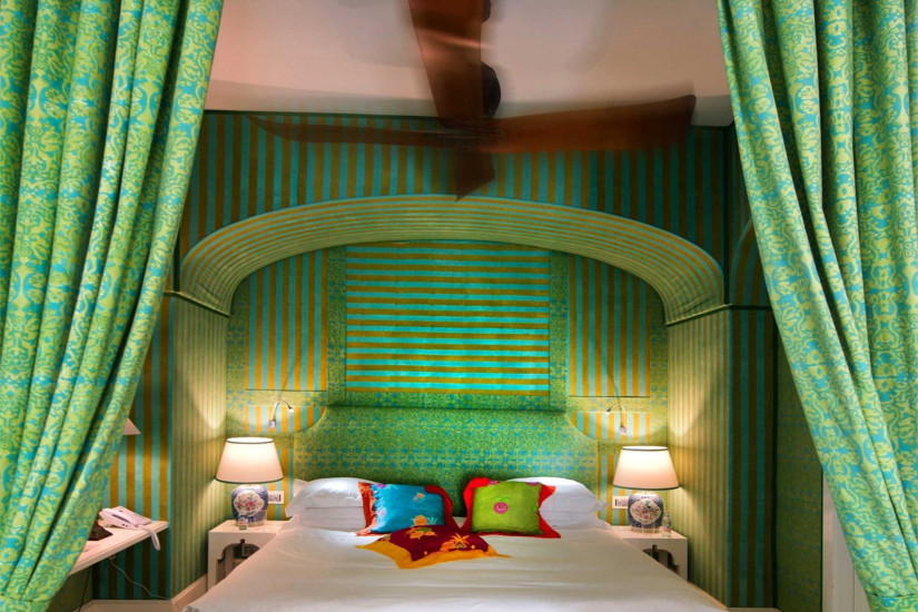 - номеру присущ восточный стиль, для которого характерен альков, отгороженный драпированным занавесом с традиционными мотивами. Индийские коллажи XIX века, изображающие любовные сцены, создают романтическую атмосферу номера. Состоит из спальни с кроватью, расположенной в алькове, просторной гостиной зоны, ванной комнаты, террасы с выходом в сад, откуда открывается захватывающий вид на море.