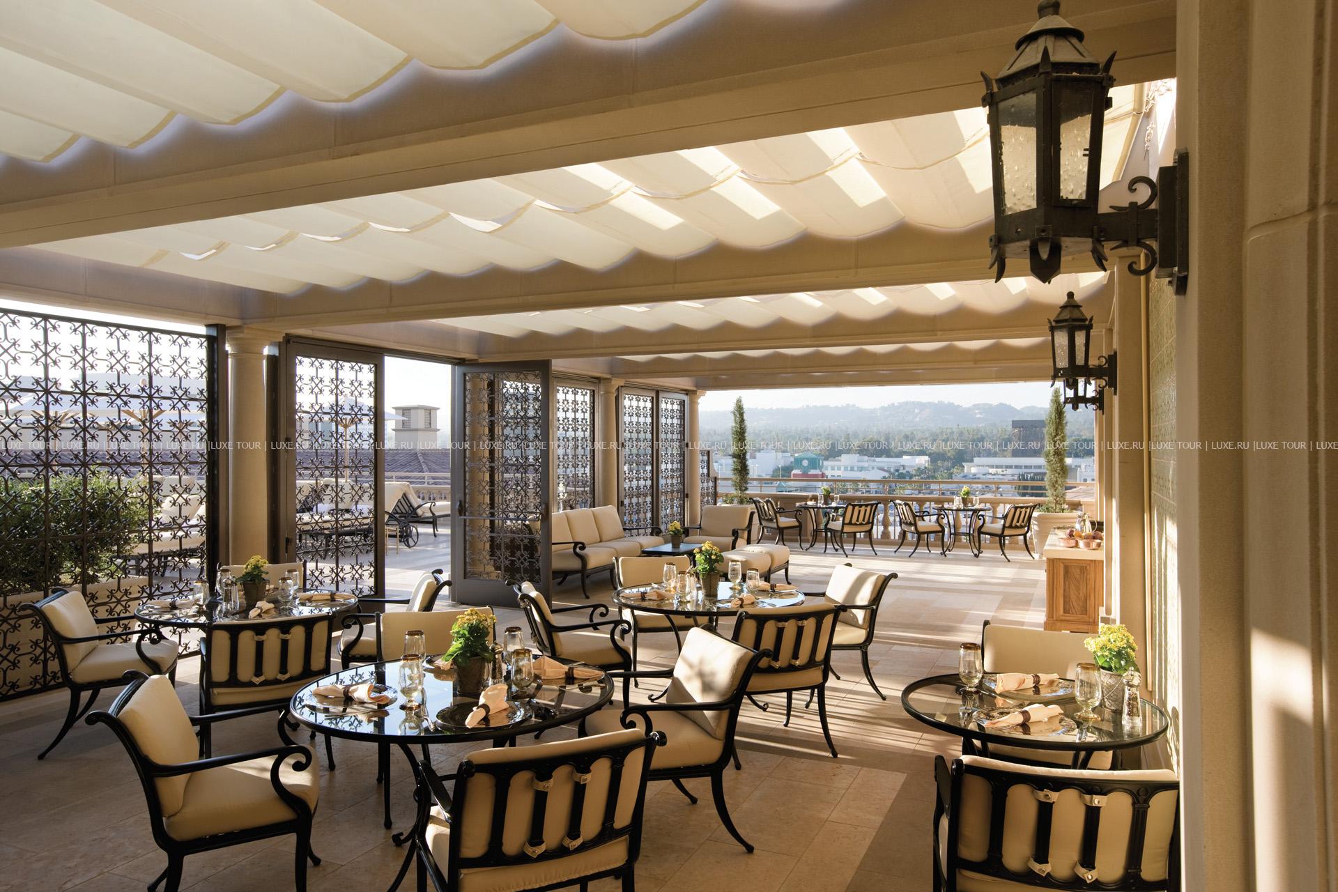 • Панорамный ресторан Conservatory Grill, расположенный на крыше у бассейна, предлагает сезонные блюда калифорнийской кухни и фирменные коктейли.