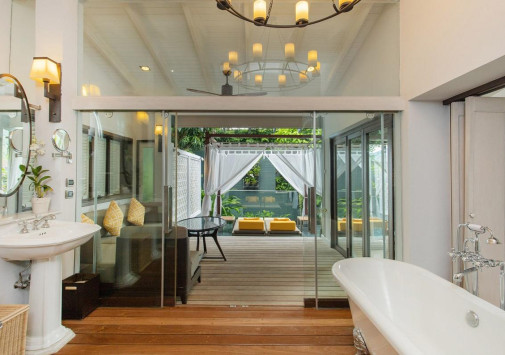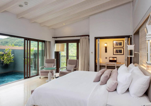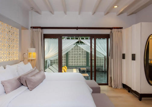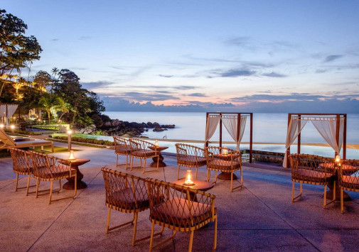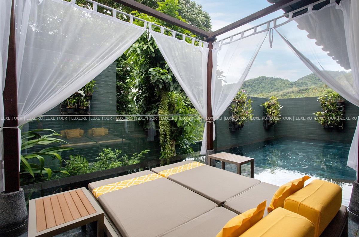Шикарные виллы The Shore at Katathani разместились среди пышной тропической зелени, на склонах невысокого холма, спускающегося к уединенной бухте, пустынному белоснежному пляжу и изумрудной глади Андамнского моря. Отель - идеальный выбор для тех, кто ищет романтику, покой и роскошь. Все виллы оборудованы с современным комфортом и располагают террасами с собственными бассейнами и изумительными видами на море и сады. Также здесь можно поплавать в большом прозрачном бассейне у пляжа, попробовать экзотические процедуры в превосходном спа-центре, поддержать форму в фитнес-зале, насладиться изысканными блюдами в ресторане на берегу, отдохнуть в уютном баре. Кроме того, отель предлагает специальные услуги для проведения свадебных церемоний и замечательные программы для молодоженов и тех, кто решил отправиться в романтическое путешествие.