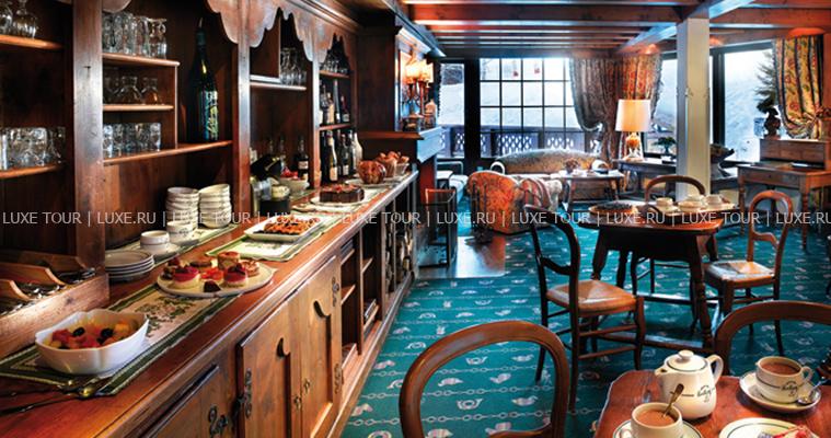 В элегантном баре-гостиной с удобными мягкими креслами и старинным, подернутым патиной камином, сервируют завтраки и предлагаются легкие закуски и различные напитки.