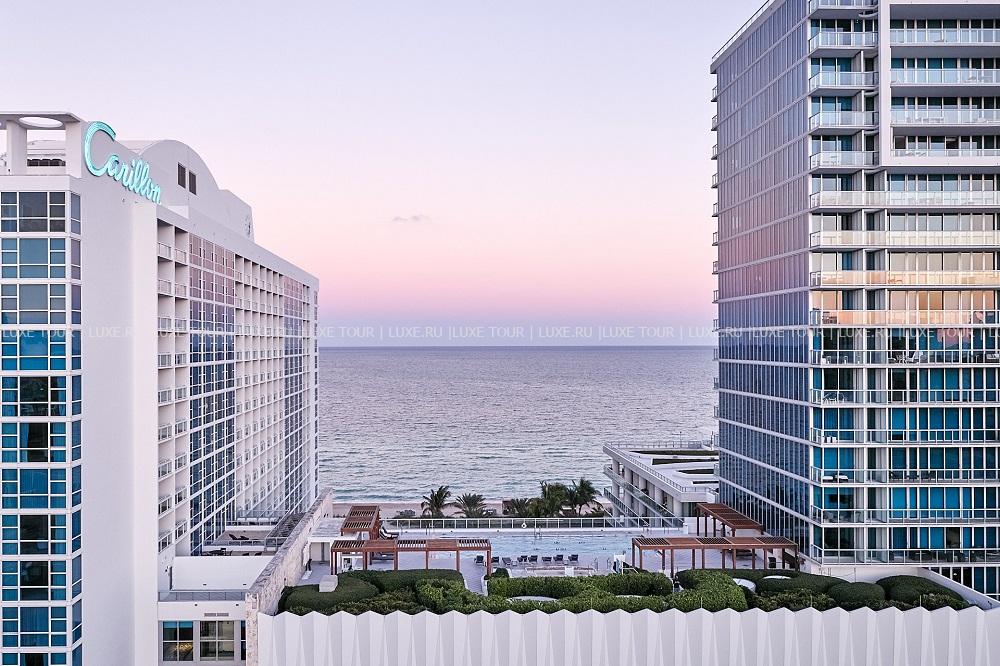 Современные белоснежные здания Carillon Miami Wellness Resort возвышаются у самого пляжа и безбрежной глади океана. История отеля начинается в 1950-х годах, когда он был известен как отель Carillon - один из самых популярных и модных в Майами-Бич. Полностью обновленный отель и сегодня поддерживает высокую репутацию: от безупречного сервиса и элегантных интерьеров, созданных знаменитым дизайнером Дэвидом Роквэллом, до комфортабельных просторных номеров категории Suite. Гордость отеля – грандиозный Спа-центр, самый крупный в юго-восточных штатах. Здесь создана целая индустрия красоты и здоровья для любого возраста и любых потребностей: оздоровительные программы, программы для похудения, семейные программы, консультации специалистов, всевозможные косметологические и Спа-процедуры и многое другое, включая бассейны, зону гидротерапии и фитнес-центр со стеной для скалолазания. К услугам гостей также ресторан с видом на океан, кафе у бассейна и уютный бар.