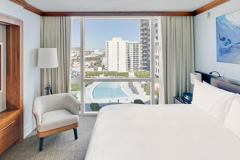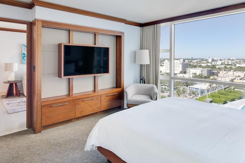- Отель располагает роскошными апартаментами, идеально подходящими для путешествующих в одиночку или для пар. Окна от пола до потолка дают возможность насладиться захватывающим видом на Атлантический океан или горизонт Майами. Все просторные апартаменты включают в себя отдельную гостиную, полностью оборудованную кухню и ванную комнату в стиле спа.