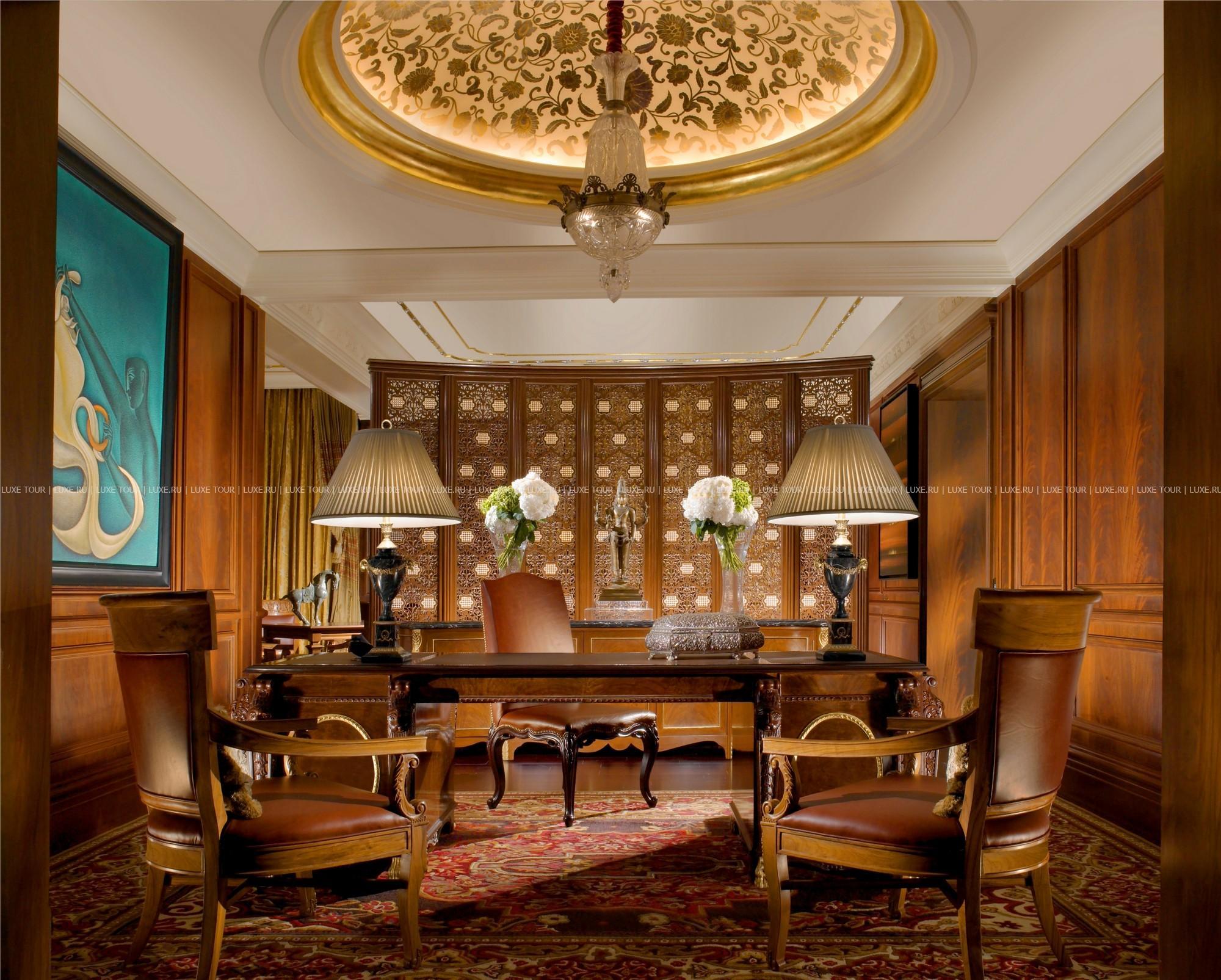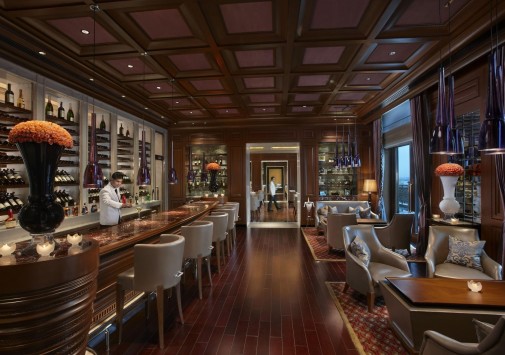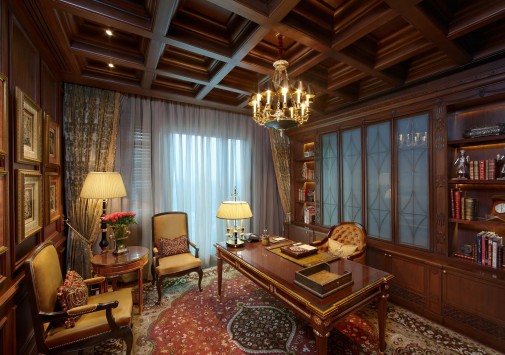 В шикарном баре-библиотеке раритетными изданиями книг предложена отличная коллекция сигар, виски и мартини.