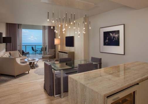 25-этажное здание The St. Regis Bal Harbour Resort Майами возвышается над белоснежным пляжем и лазурной гладью Атлантического океана, прямо напротив магазинов знаменитого торгового района Бал Харбор. Отель впечатляет великолепными интерьерами, созданными известными компаниями Sieger Suarez Architectural Partnership и Yabu Pushelberg, которые искусно соединили ультрасовременный дизайн и изысканный стиль ар-деко. Помимо прекрасного расположения и оригинального дизайна гостей отеля ждет весь спектр первоклассных услуг – от шикарных номеров с балконами и видом на океан, трех ресторанов с превосходной кухней и стильного бара с богатейшей винотекой до центра Remède Spa площадью 1300 м2, двух бассейнов, детского клуба и высокотехнологичного конференц-центра с вместительным залами.
