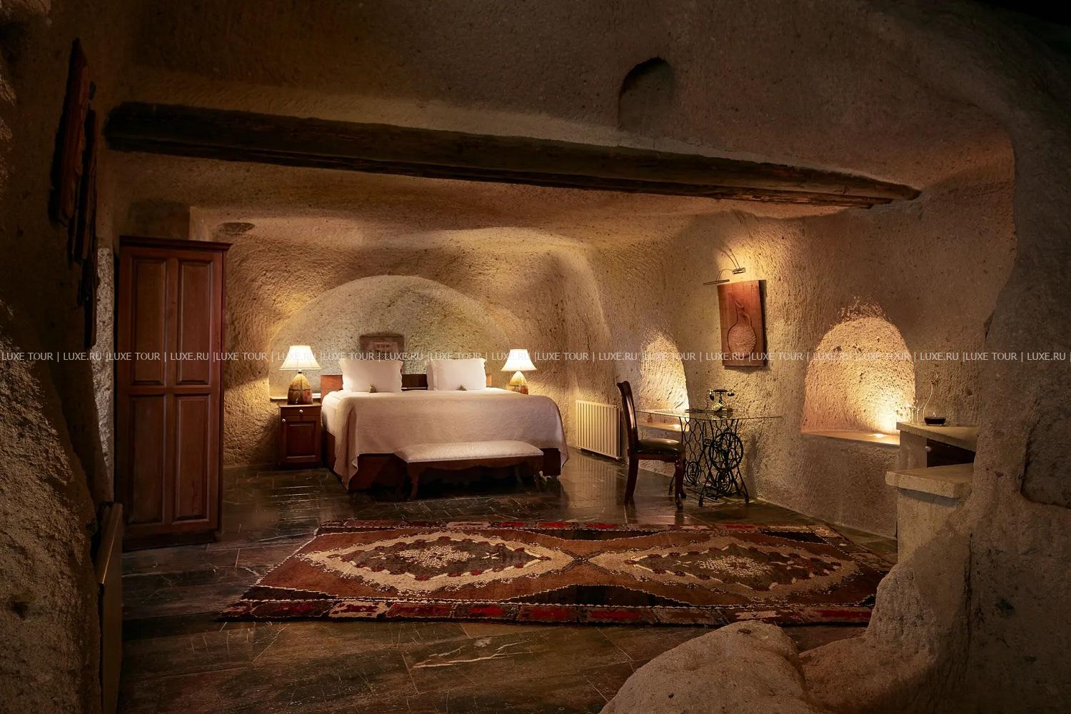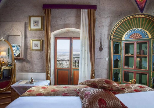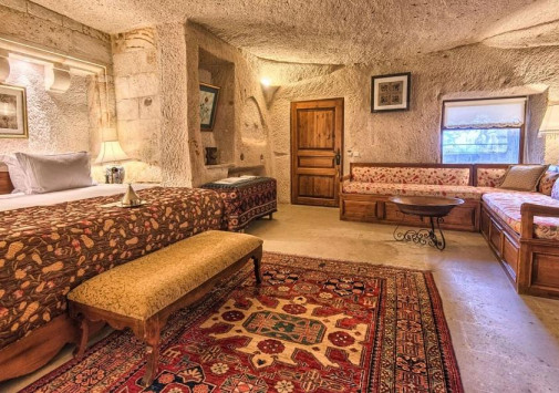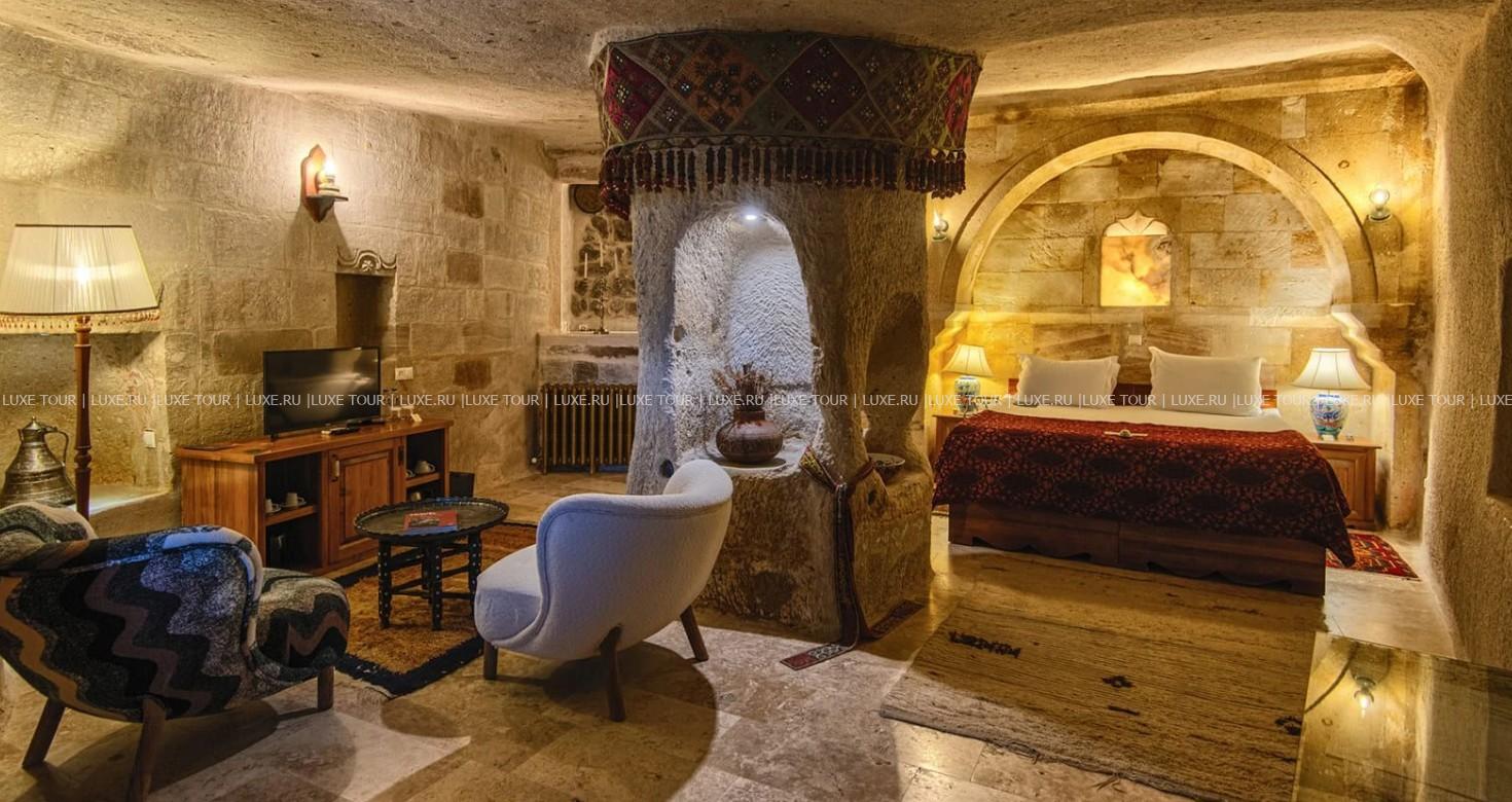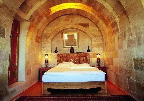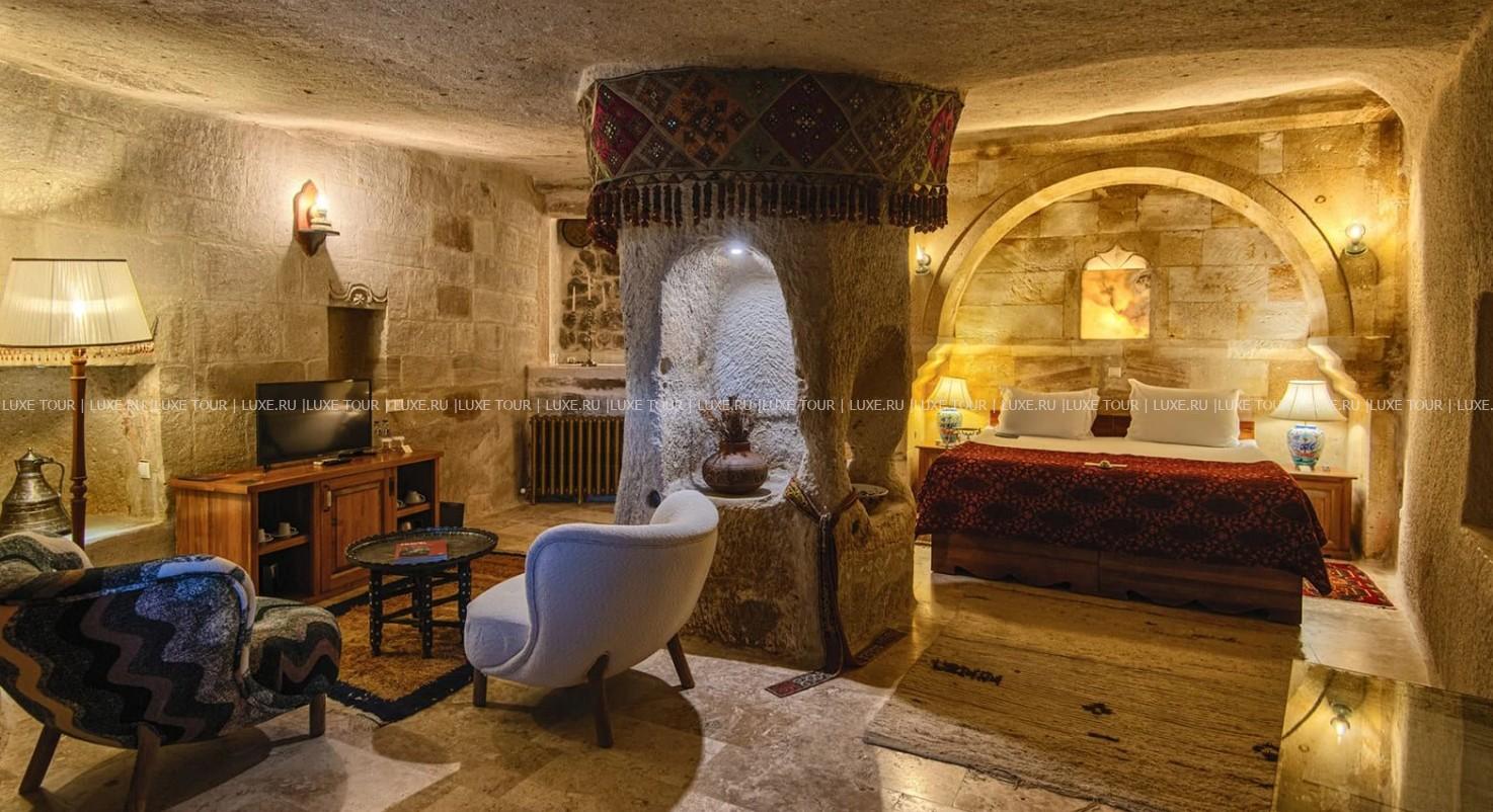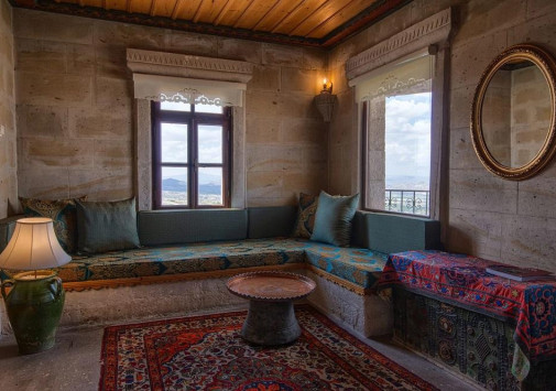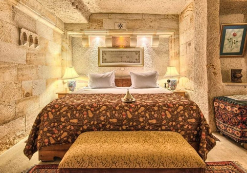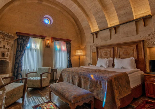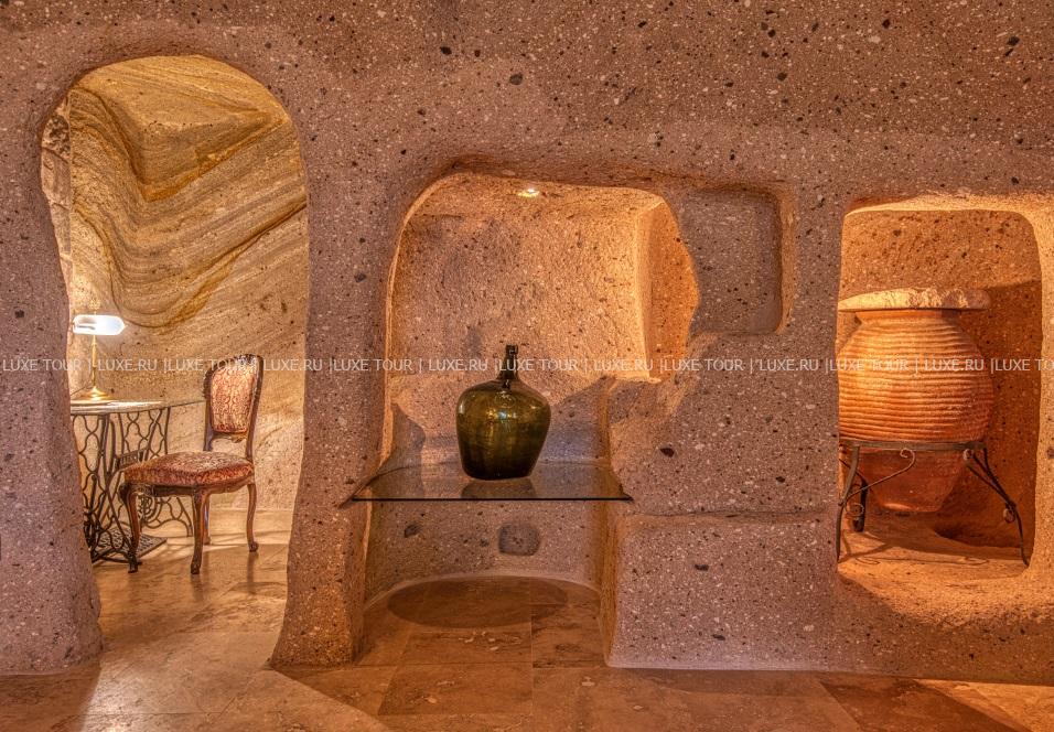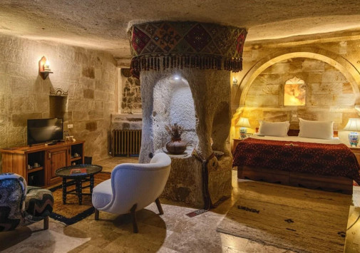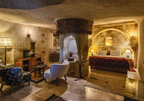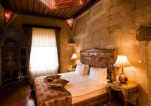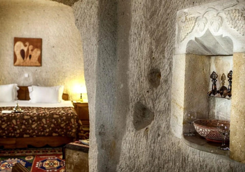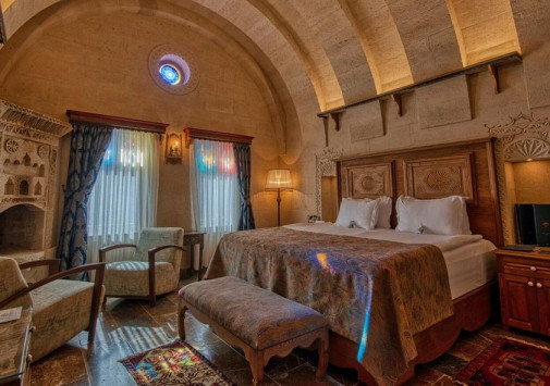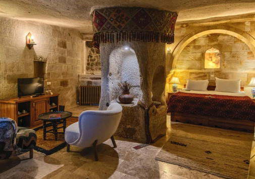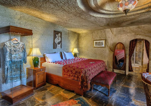 На склонах живописного холма, у подножья величественной скалы-крепости Учхисар, внесенной в список всемирного наследия ЮНЕСКО, находится Museum Hotel. «Уникальный» – никакое другое слово не может описать этот необычный бутик-отель. Отель, который начал свою работу 2003 году, размещается в древних пещерах, бывших домах местных жителей и на руинах, обнаруженных при археологических раскопках. Все помещения отеля украшены настоящими музейными экспонатами – от бесценных произведений искусства и ковров ручной работы до раритетных антикварных предметов и артефактов. Каждый номер отеля имеет свой неповторимый облик, посвящен определенной тематике и украшен подлинными изделиями антикварного искусства. Во всех номерах имеются джакузи, в некоторых – краны с красным и белым местным вином, а из окон открывается потрясающий вид на долину Каппадокии. Полюбоваться фантастическим видом на сливающуюся с горизонтом долину, парк Гёреме и вулкан Эрджияс гости могут из разных уголков отеля: наслаждаясь изысканными турецкими блюдами в ресторане, отдыхая за бокалом вина в баре, плавая в лазурном бассейне или расслабляясь на террасе для массажей. В отеле также имеется музей с богатейшей коллекцией шедевров турецкого искусства и античности, экологический сад и отреставрированный исторический комплекс с залами и панорамной террасой – идеальное место для различных мероприятий. Museum Hotel, отмеченный множеством престижных наград, предоставляет своим гостям уникальную возможность совершить путешествие в тысячелетнюю историю Турции.