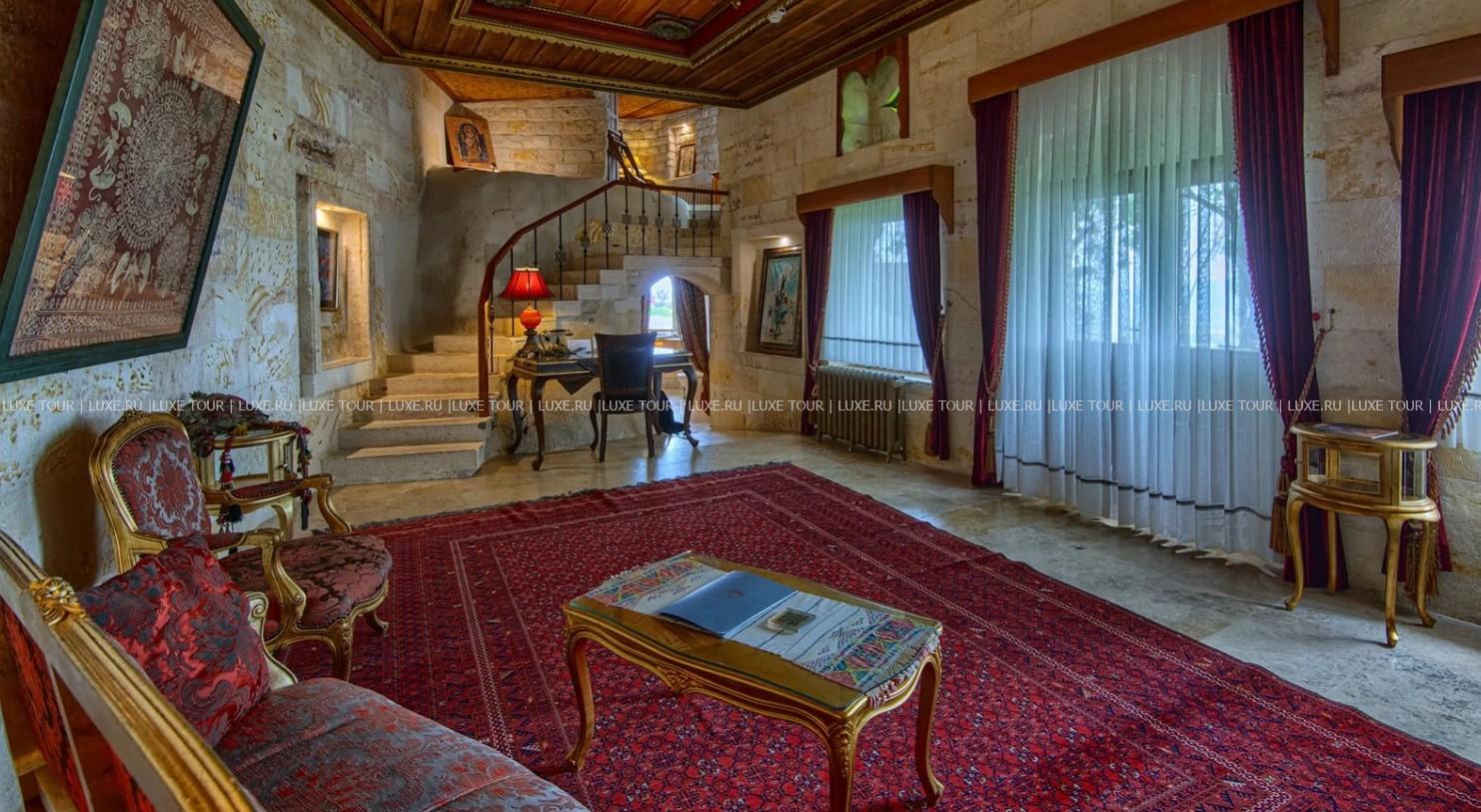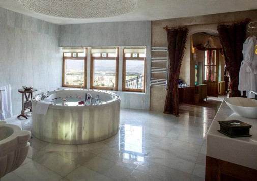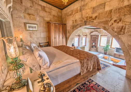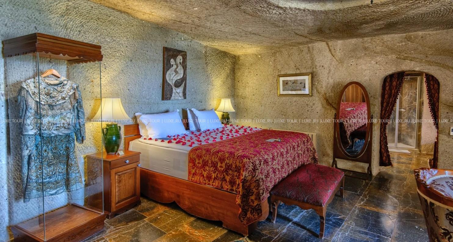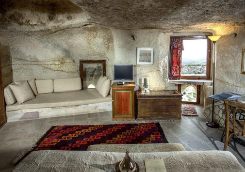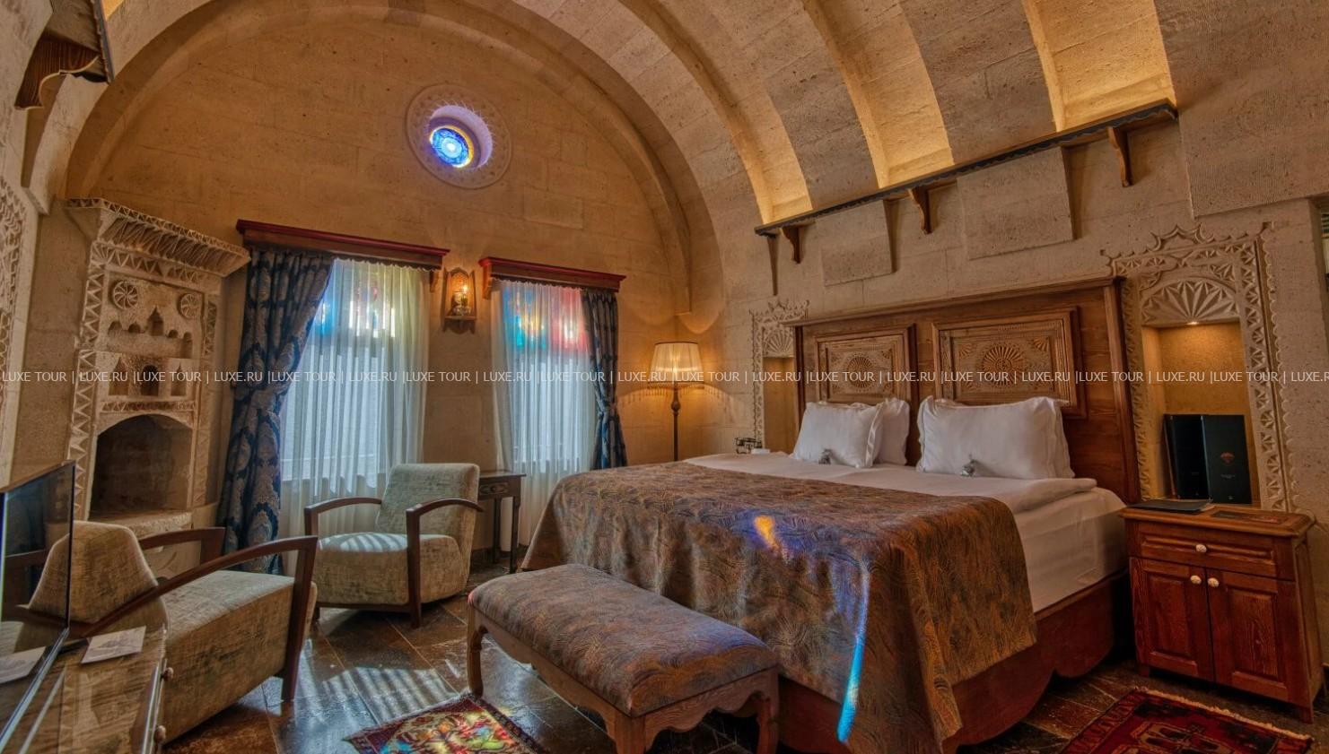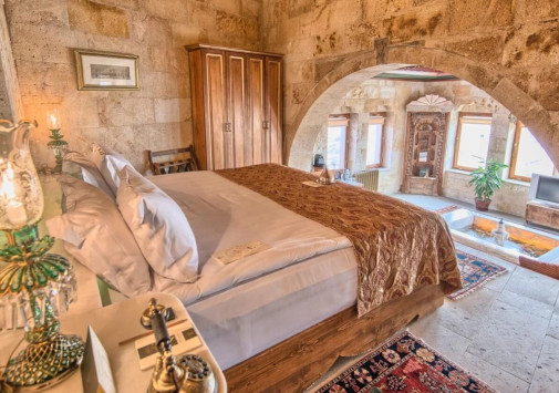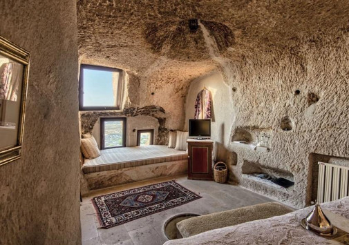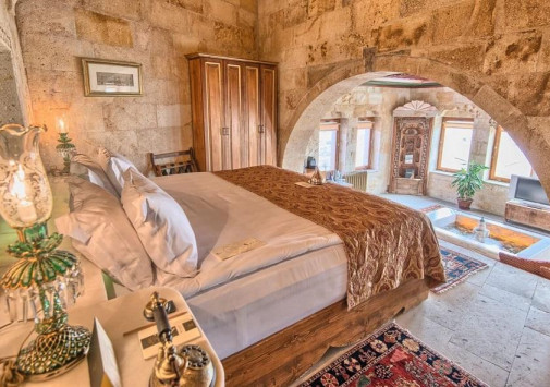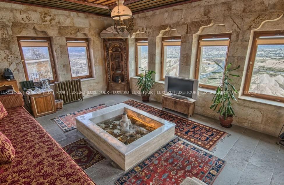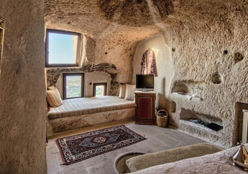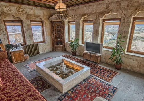 На склонах живописного холма, у подножья величественной скалы-крепости Учхисар, внесенной в список всемирного наследия ЮНЕСКО, находится Museum Hotel. «Уникальный» – никакое другое слово не может описать этот необычный бутик-отель. Отель, который начал свою работу 2003 году, размещается в древних пещерах, бывших домах местных жителей и на руинах, обнаруженных при археологических раскопках. Все помещения отеля украшены настоящими музейными экспонатами – от бесценных произведений искусства и ковров ручной работы до раритетных антикварных предметов и артефактов. Каждый номер отеля имеет свой неповторимый облик, посвящен определенной тематике и украшен подлинными изделиями антикварного искусства. Во всех номерах имеются джакузи, в некоторых – краны с красным и белым местным вином, а из окон открывается потрясающий вид на долину Каппадокии. Полюбоваться фантастическим видом на сливающуюся с горизонтом долину, парк Гёреме и вулкан Эрджияс гости могут из разных уголков отеля: наслаждаясь изысканными турецкими блюдами в ресторане, отдыхая за бокалом вина в баре, плавая в лазурном бассейне или расслабляясь на террасе для массажей. В отеле также имеется музей с богатейшей коллекцией шедевров турецкого искусства и античности, экологический сад и отреставрированный исторический комплекс с залами и панорамной террасой – идеальное место для различных мероприятий. Museum Hotel, отмеченный множеством престижных наград, предоставляет своим гостям уникальную возможность совершить путешествие в тысячелетнюю историю Турции.