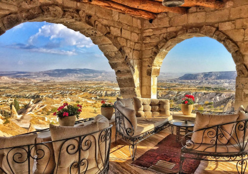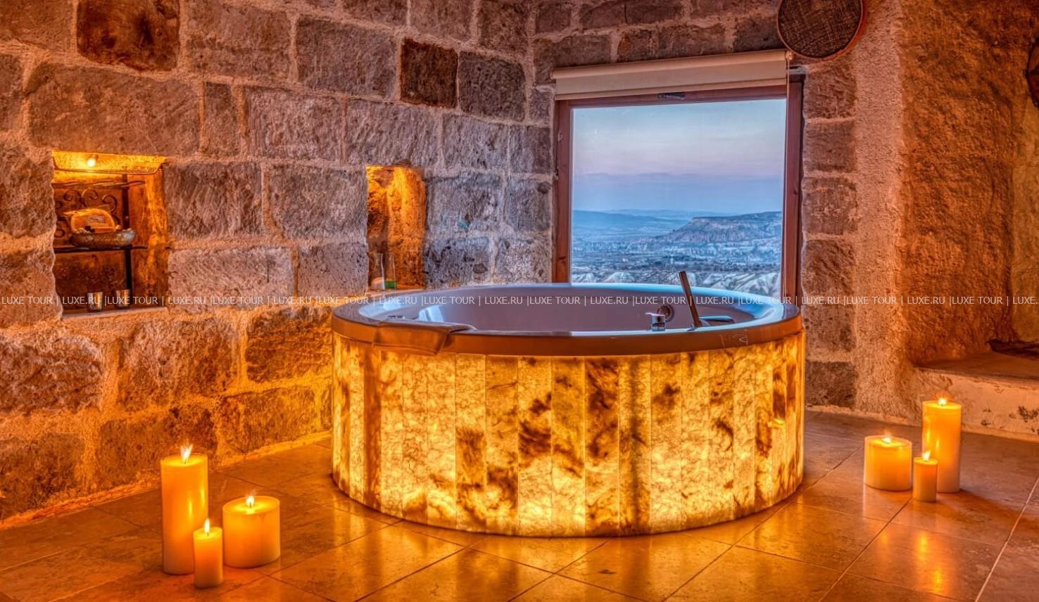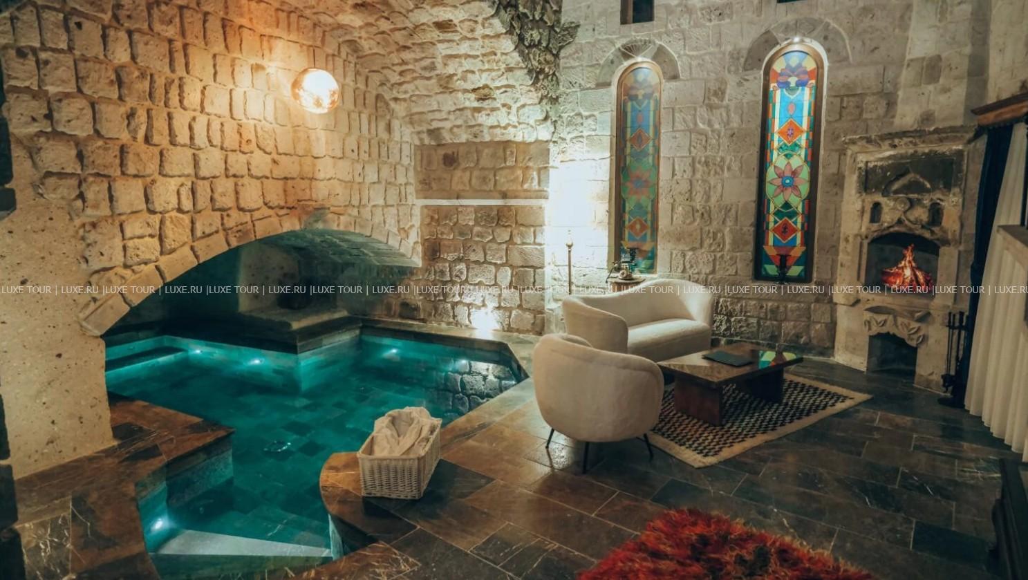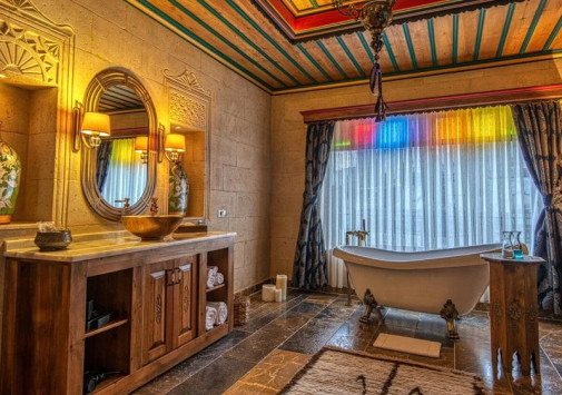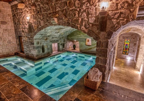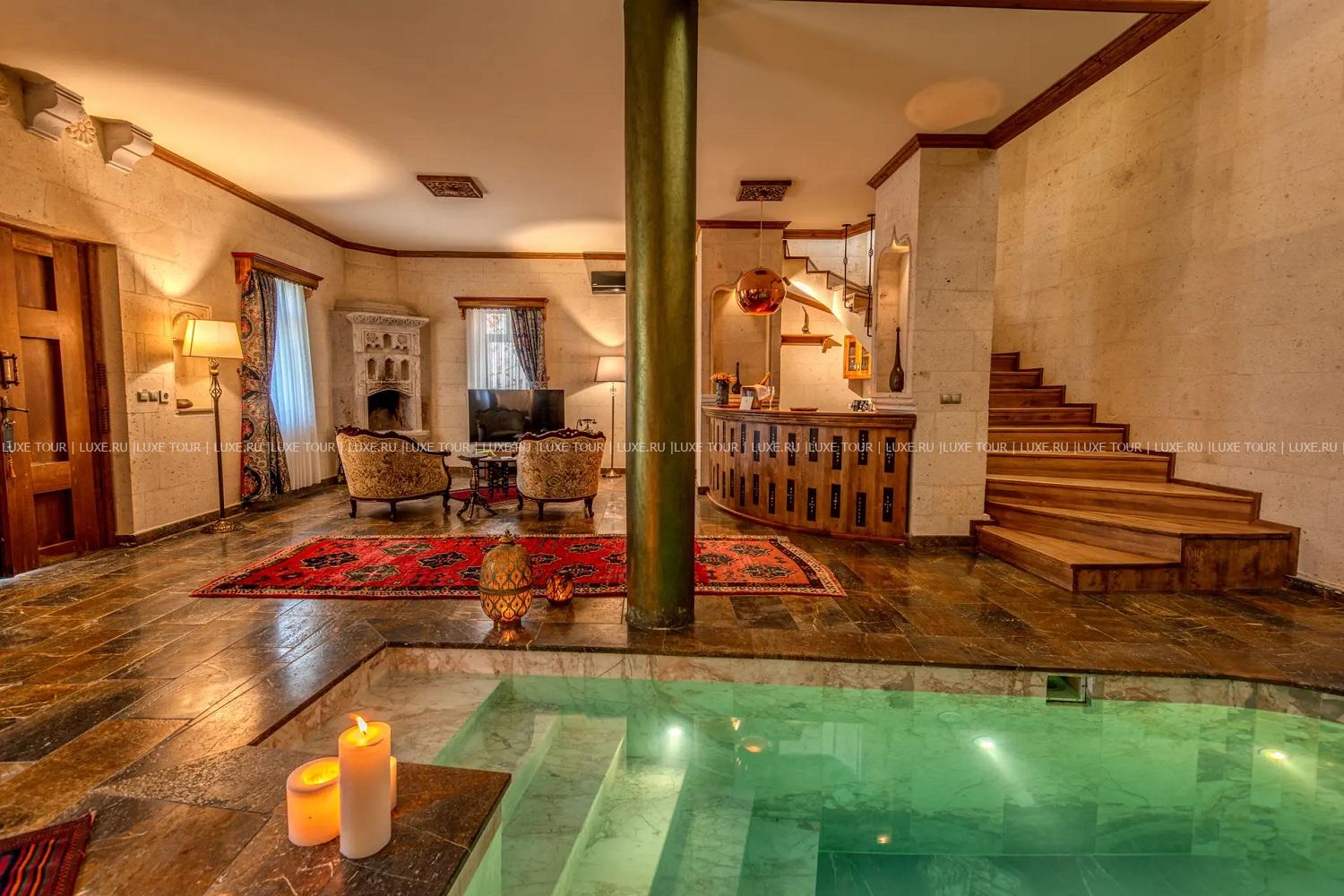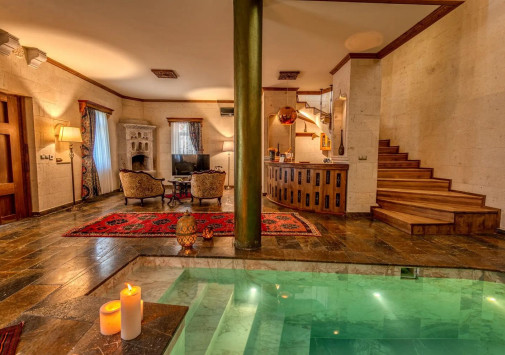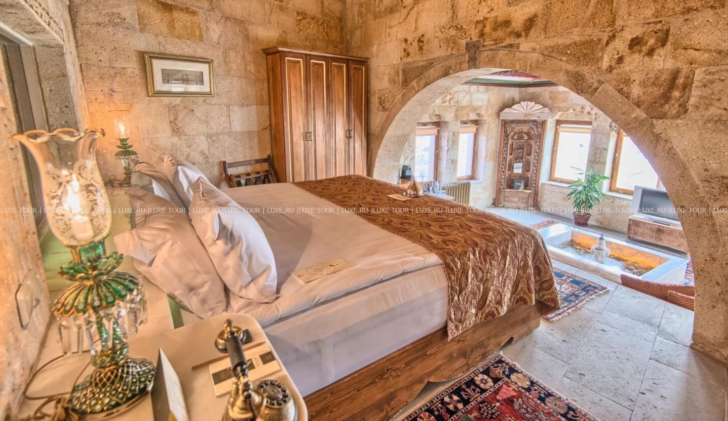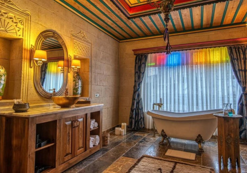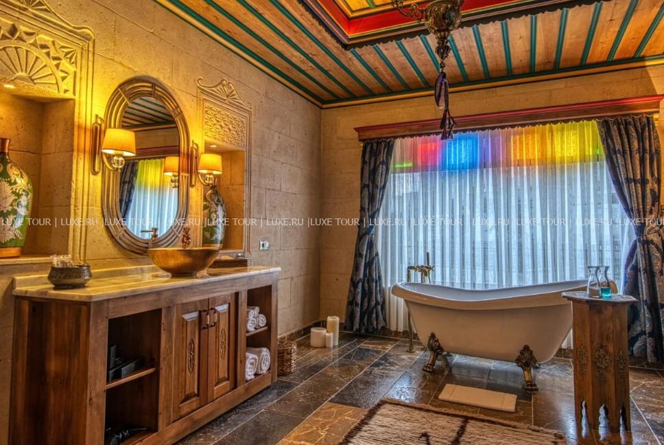 На склонах живописного холма, у подножья величественной скалы-крепости Учхисар, внесенной в список всемирного наследия ЮНЕСКО, находится Museum Hotel. «Уникальный» – никакое другое слово не может описать этот необычный бутик-отель. Отель, который начал свою работу 2003 году, размещается в древних пещерах, бывших домах местных жителей и на руинах, обнаруженных при археологических раскопках. Все помещения отеля украшены настоящими музейными экспонатами – от бесценных произведений искусства и ковров ручной работы до раритетных антикварных предметов и артефактов. Каждый номер отеля имеет свой неповторимый облик, посвящен определенной тематике и украшен подлинными изделиями антикварного искусства. Во всех номерах имеются джакузи, в некоторых – краны с красным и белым местным вином, а из окон открывается потрясающий вид на долину Каппадокии. Полюбоваться фантастическим видом на сливающуюся с горизонтом долину, парк Гёреме и вулкан Эрджияс гости могут из разных уголков отеля: наслаждаясь изысканными турецкими блюдами в ресторане, отдыхая за бокалом вина в баре, плавая в лазурном бассейне или расслабляясь на террасе для массажей. В отеле также имеется музей с богатейшей коллекцией шедевров турецкого искусства и античности, экологический сад и отреставрированный исторический комплекс с залами и панорамной террасой – идеальное место для различных мероприятий. Museum Hotel, отмеченный множеством престижных наград, предоставляет своим гостям уникальную возможность совершить путешествие в тысячелетнюю историю Турции.