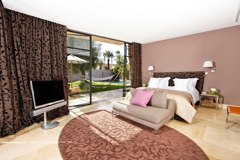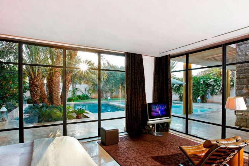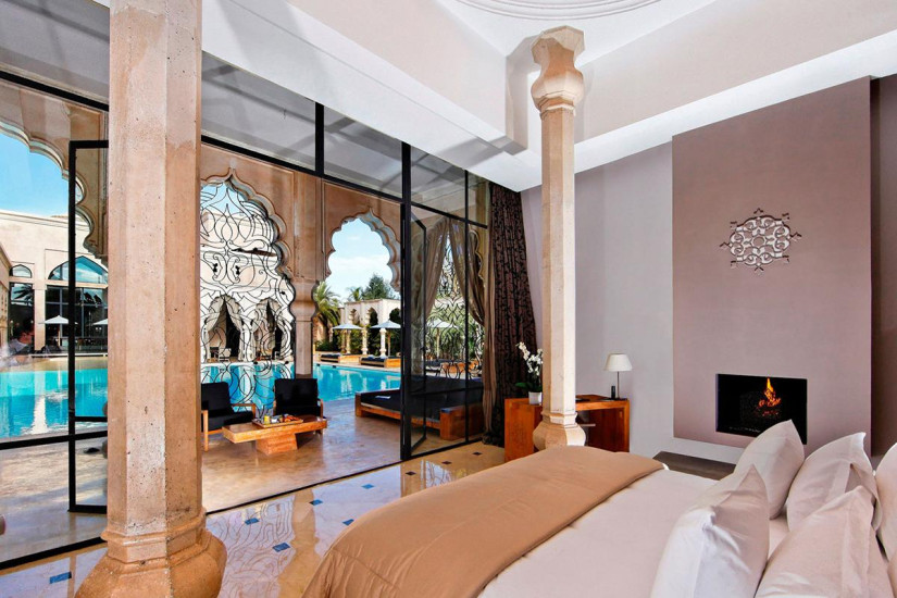 - 460 м2. Роскошный двухэтажный дворец в восточном стиле, увенчанный золоченым куполом; включает две спальни с кроватями king-size, ванными комнатами и гардеробными, просторную гостиную с камином и обеденной зоной, кухню, террасу с видом на Атласские горы, пышный сад с большим подогреваемым бассейном. Гостям предоставляются круглосуточные услуги персонального дворецкого.