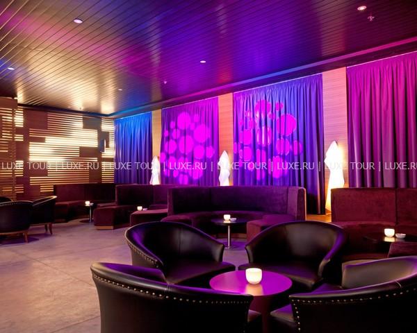 Aqua можно отдохнуть за коктейлем, перекусить и покурить кальян.