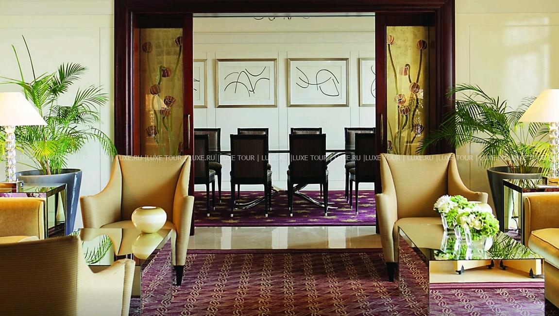 Для гостей – залы для деловых и торжественных мероприятий общей площадью 4180 м2, включая зал для торжеств, вмещающий до 1200 гостей, открытая терраса (850 м2), патио с садом, круглосуточный бизнес-центр, торговая галерея, парковка, аренда машин, лимузин-сервис, услуги консьержа, услуги прачечной и химчистки.
