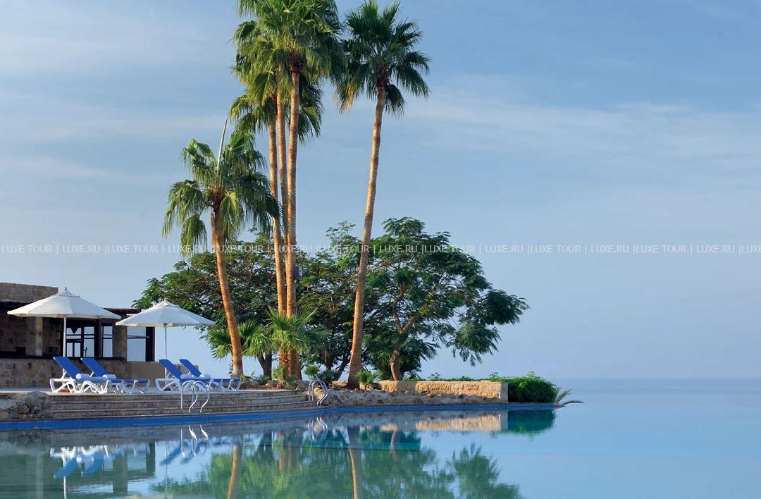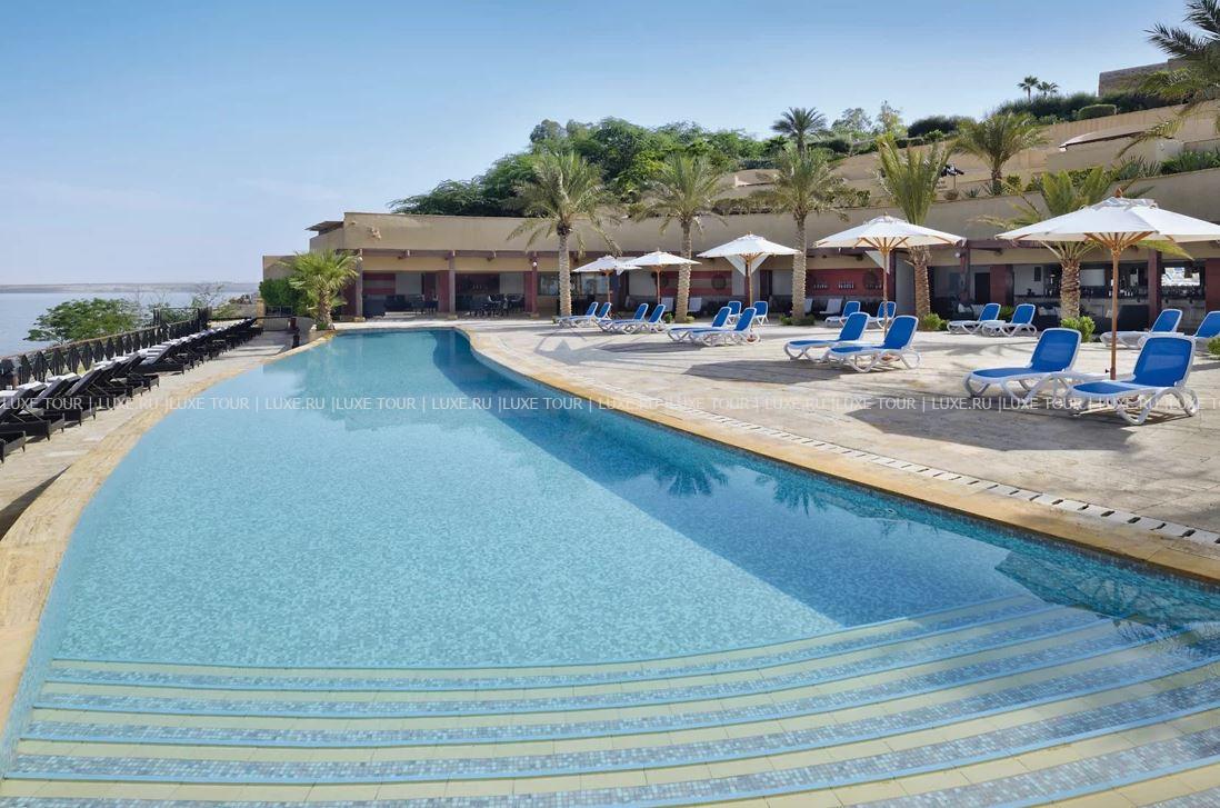 На территории отеля имеются: 2 открытых пресноводных бассейна с видом на Мертвое море (один бассейн-инфинити, второй – с подогревом и гидромассажем), детский подогреваемый бассейн, открытый подогреваемый бассейн, открытый подогреваемый бассейн в Spa-центре, крытый подогреваемый бассейн с водой из Мертвого моря и гидротерапевтические бассейны в Spa-центре, а также приватные бассейны для гостей Premium и Royal Villa.