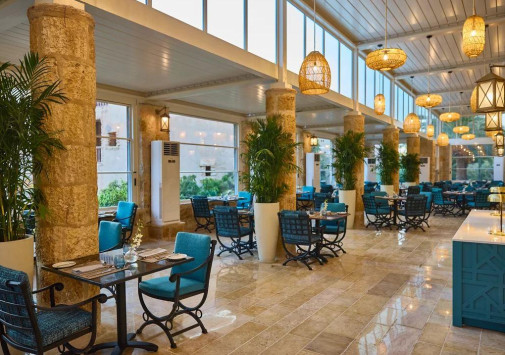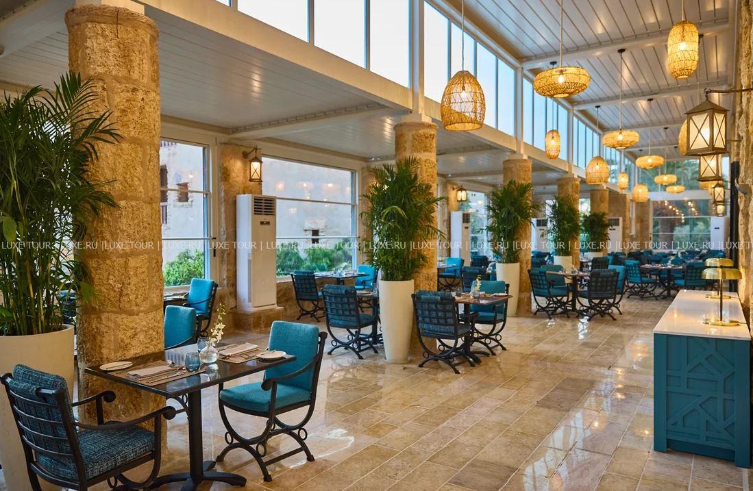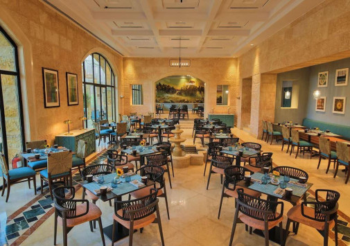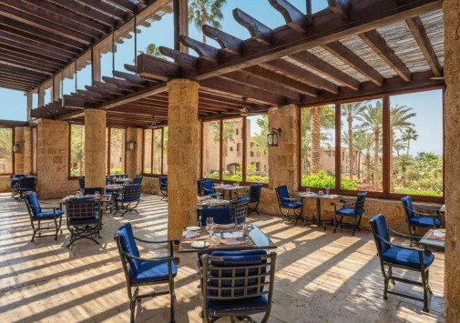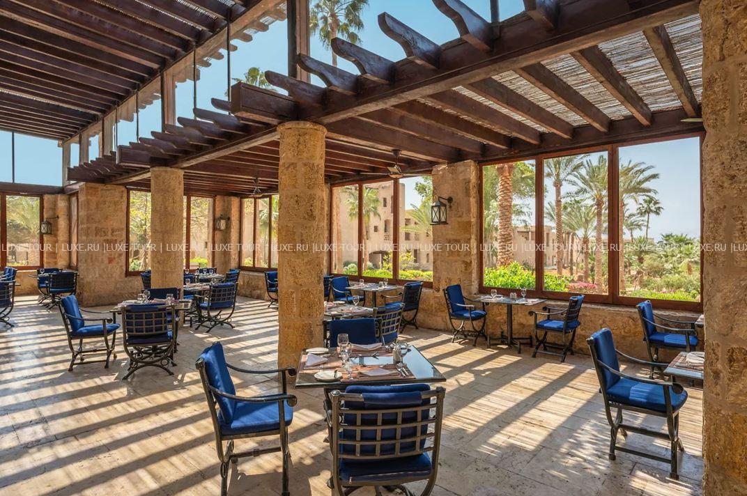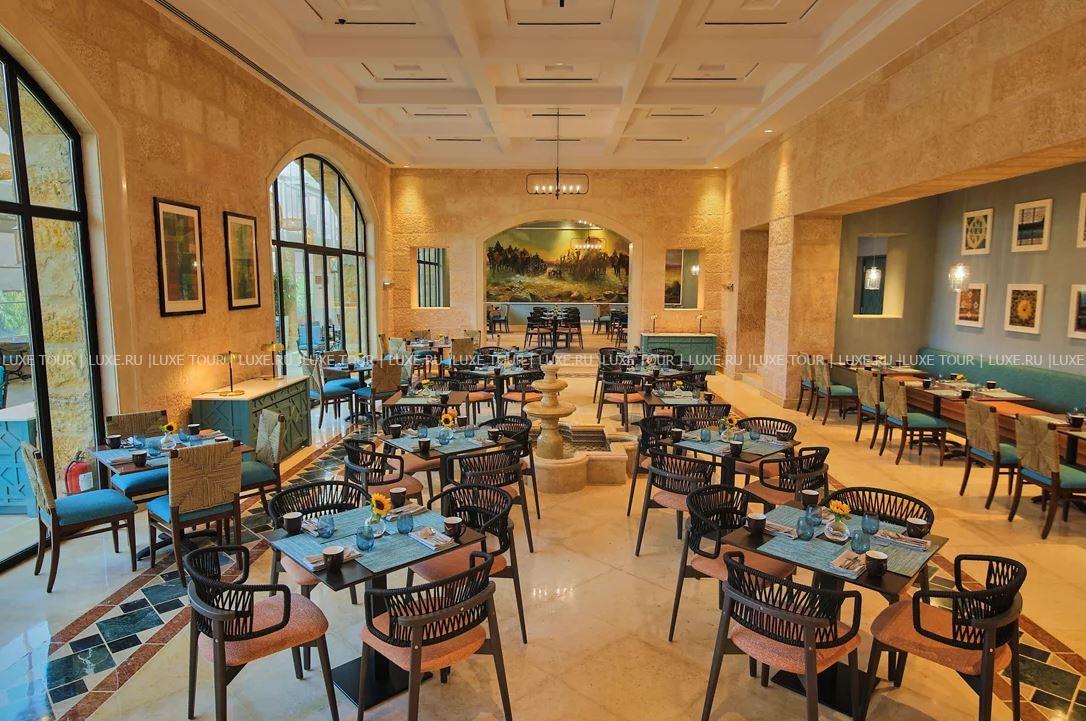- Ресторан Al Saraya с арочными окнами, открытой террасой и видом на сад предлагает «шведский стол» и меню a la carte. с богатым выбором блюд средиземноморской кухни.