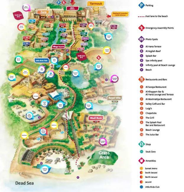 На самом берегу Мертвого моря, среди 8 гектаров живописных садов с лазурными бассейнами раскинулась настоящая арабская деревня – Mövenpick Resort & Spa Dead Sea Отель впечатляет разнообразием услуг: элегантные номера с видом на море, сады и горы, и королевская вилла с персональным бассейном, девять ресторанов и баров, приглашающих в гастрономическое путешествие по всему свету, детский клуб и развлечения для всей семьи, конгресс-центр с вместительными залами и первоклассный комплекс Zara Spa площадью 6000 м2, предлагающий широчайший спектр уникальных процедур и программ на основе целебной воды и продуктов Мертвого моря. Mövenpick Resort & Spa Dead Sea – роскошный оазис для отдыха, оздоровления и восстановления сил и душевной гармонии