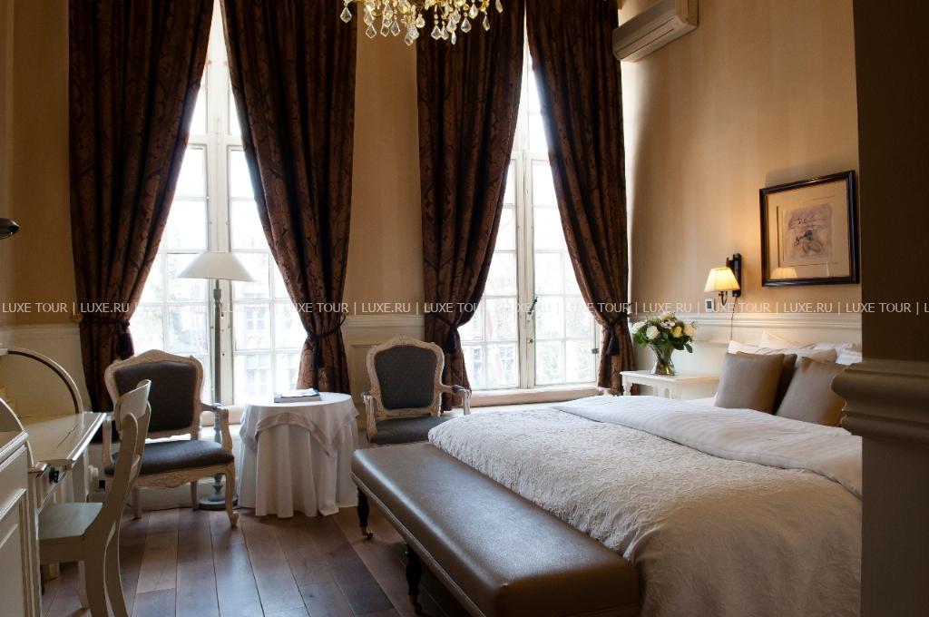 De Tuilerieen Брюгге Бельгия разместился в небольшом красивом особняке 15 века, на берегу живописного канала Den Dijver, рядом с основными достопримечательностями средневекового города. В De Tuilerieen Брюгге Бельгия бережно хранятся традиции богатого исторического прошлого: старинная живопись и предметы антиквариата, массивные камины и зеркала в тяжелых рамах, а стены зала Hall of Fame украшают портреты с автографами знаменитостей, останавливавшихся в отеле. В комфортабельных номерах — элегантные индивидуальные интерьеры, украшенные отделкой из изысканных тканей, изящной мебелью и утонченными произведениями искусства. De Tuilerieen Брюгге Бельгия располагает Оздоровительным Центром с бассейном, сауной и хаммамом, к услугам гостей — 3 переговорных комнаты, автомобильная парковка, лимузин-сервис. В элегантном зале сервируют изысканные завтраки, а уютный бар располагает к приятному отдыху. De Tuilerieen Брюгге Бельгия предоставляет прекрасную возможность окунуться в атмосферу утонченной роскоши, овеянную вековой историей старинного города.