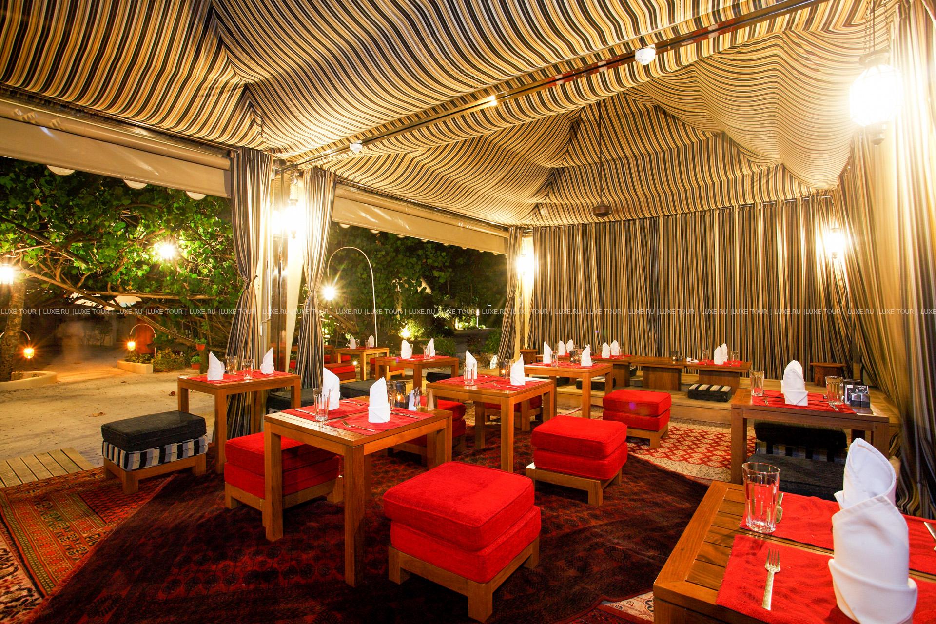 • Ресторан Al Khaimah, стилизованный под бедуинский шатер, представляет традиционные арабские и ближневосточные блюда.