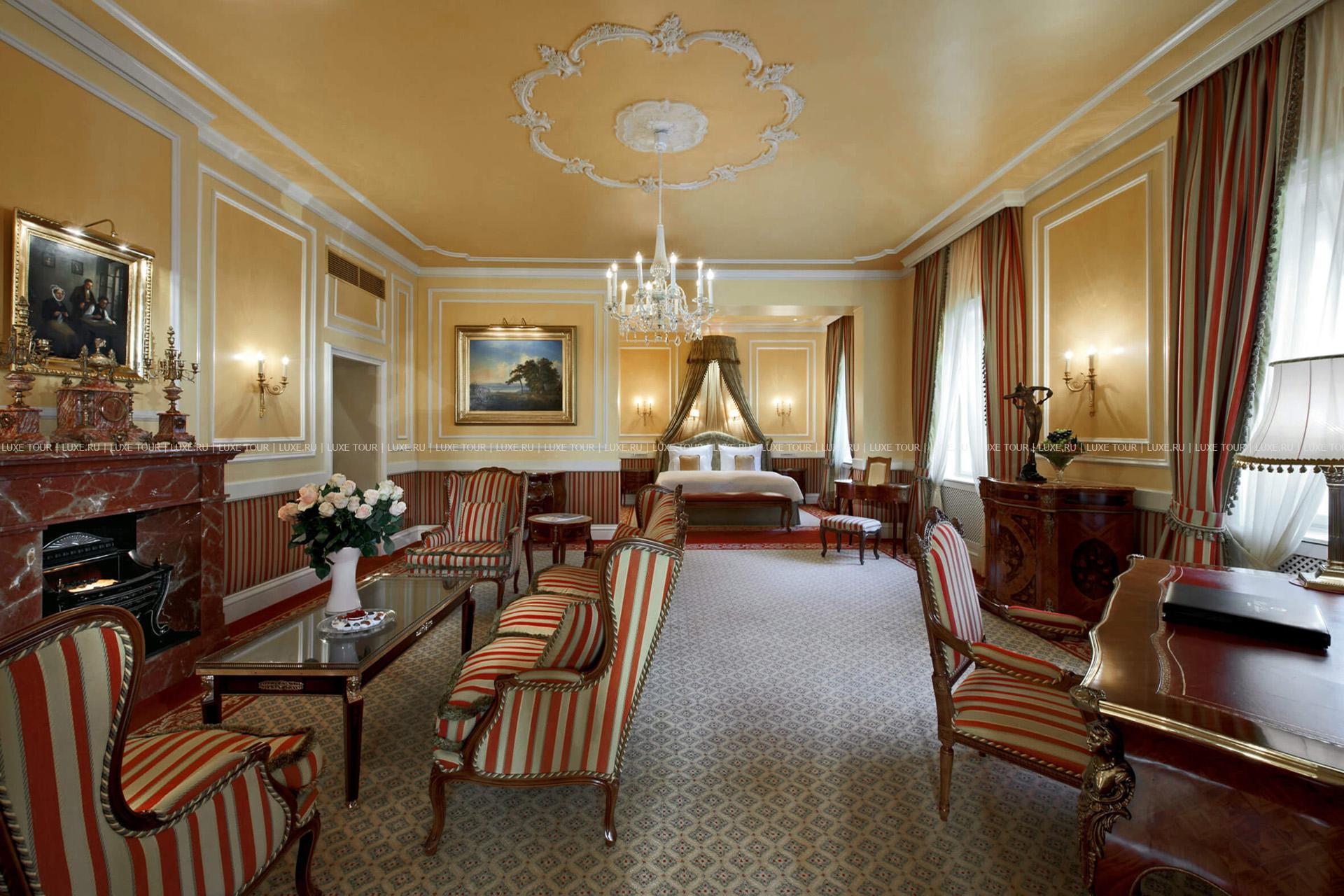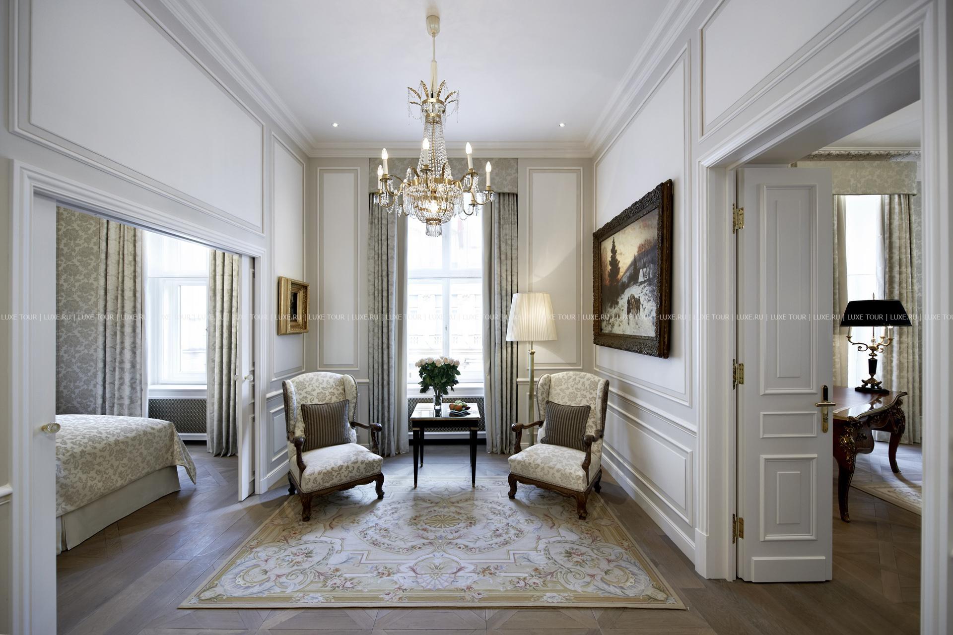 Убранство всех помещений отеля, включая комфортабельные номера, впечатляет тонким вкусом и роскошью: сверкание хрусталя, богатые ткани, антикварная мебель, подлинные шедевры живописи и произведения искусства. Это великолепие дополняет безупречный сервис и эксклюзивные услуги – от прекрасно оборудованного СПА-центра, предлагающего уникальные процедуры на основе шоколада, до шикарных ресторанов и баров, восхищающих элегантными интерьерами и отменной кухней. Кстати, только в кондитерской отеля можно приобрести знаменитый фирменный торт, приготовленный по рецепту, который держится в секрете. Для деловых и торжественных мероприятий отель располагает вместительными залами и бизнес-центром.