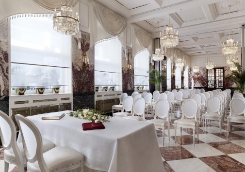Для гостей - 8 элегантных залов для деловых встреч и торжеств, современно оснащенный бизнес-центр, автомобильная парковка, гараж, лимузин-сервис, услуг консьержа, услуги прачечной и химчистки.