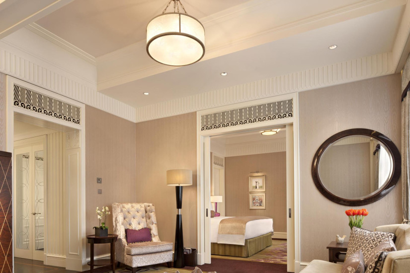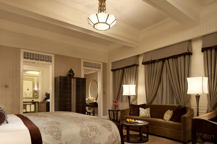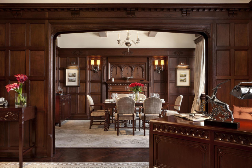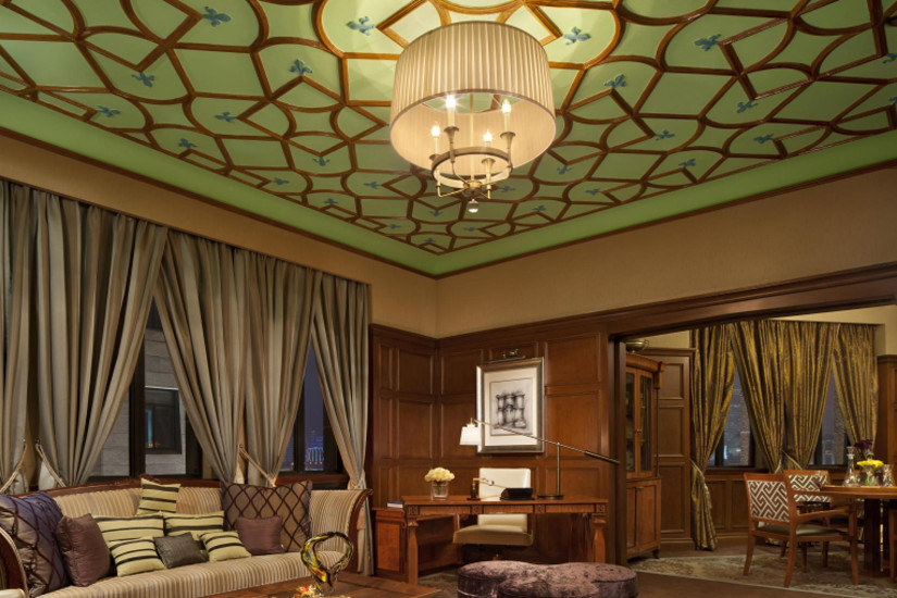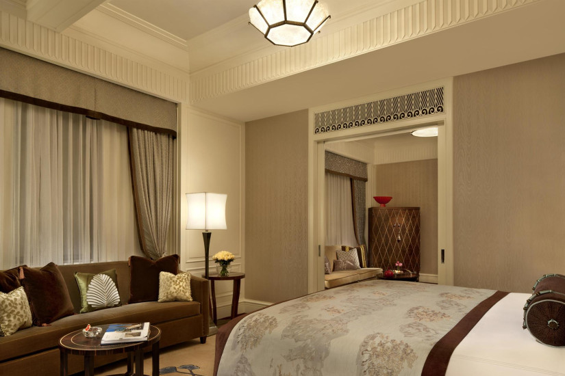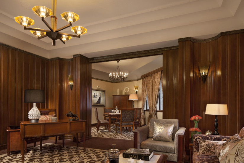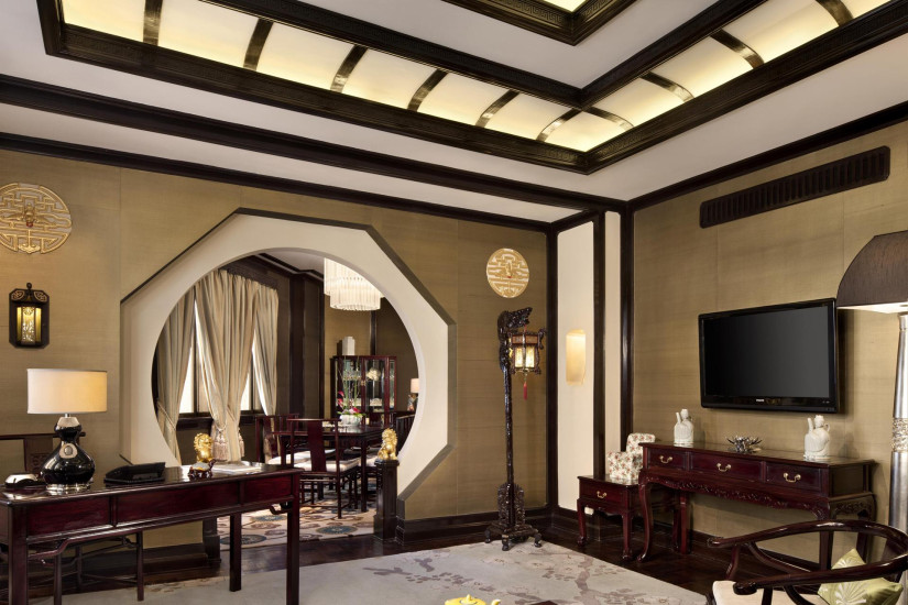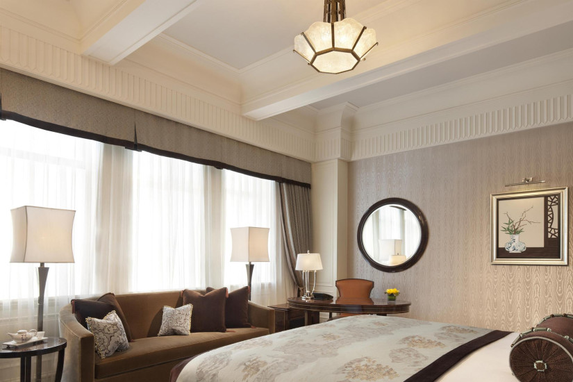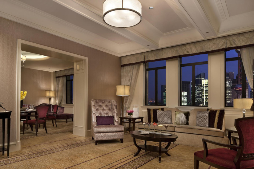 - 268 м2. Фешенебельные исторические апартаменты с захватывающим видом на Шанхай и персональным лифтом занимают весь 10 этаж. Ранее апартаменты занимал основатель и владелец отеля. Номер включает спальню с кроватью king-size, просторную гостиную, столовую на 10 персон, гардеробную, ванную комнату с джакузи.
