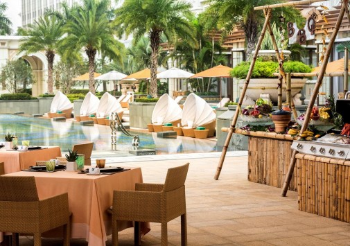 В городе Котай, среди бурлящей жизни развлекательного комплекса Galaxy Macau находится оазис утонченной роскоши и спокойствия - Banyan Tree Macau. Отель престижной сети предлагает эксклюзивные условия для отдыха. Гостей ждут шикарные сьюты с бассейнами для релаксации и просторные виллы с открытыми бассейнами и садом. Два ресторана восхищают отменной кухней, а бары – отличным выбором первоклассных напитков. Ещё одна гордость отеля – великолепный СПА-центр, где предложены уникальные процедуры. К услугам гостей также большой бассейн с прозрачной водой, терраса-солярий, бутик, залы для деловых и торжественных событий, и целый ряд других услуг класса «люкс».