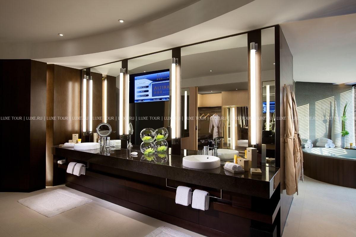 38-этажная башня Altira Macau взмывает ввысь над сверкающей гладью моря и живописными ландшафтами острова Тайпа. В этом фешенебельном отеле всё представлено по высшей категории. Шикарные интерьеры – от дизайнера с мировым именем Питера Ремедиоса. Просторные номера впечатляют стильным декором, ультрасовременным оснащением и захватывающим панорамным видом на залив и полуостров Макао. Рестораны восхищают изысками европейской и азиатской кухни, а бары и ночные клубы с казино предлагают прекрасные возможности для развлечений и приятного отдыха. Панорамный бассейн с подогревом и подводной музыкой входит в 10 лучших бассейнов мира. Великолепный СПА центр представляет эксклюзивные процедуры, а фитнес-центр оборудован всеми новейшими тренажерами.