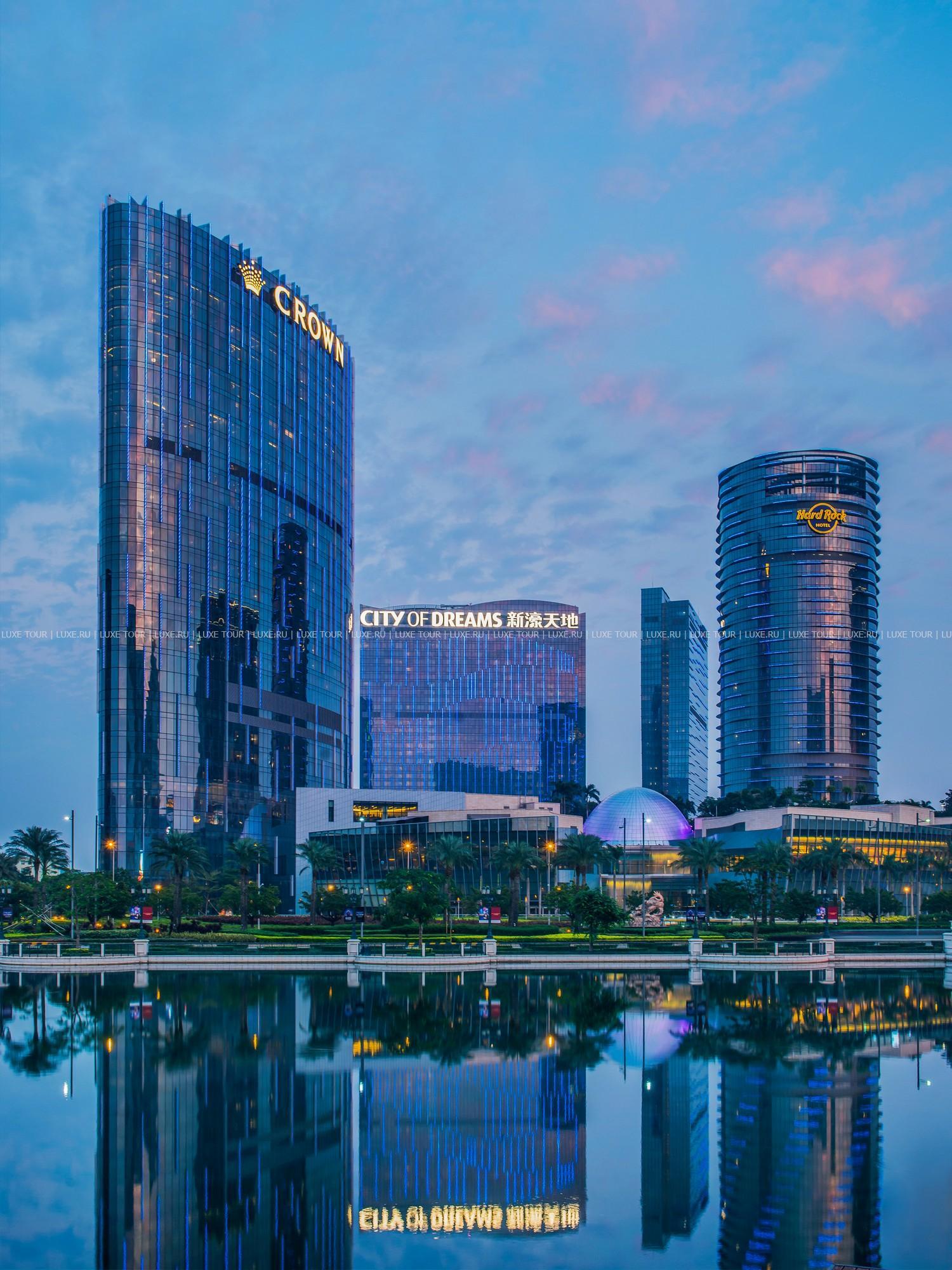 Crown Towers Макао располагается в современном развлекательном комплексе City of Dreams, в районе Котай. Помимо всевозможных развлечений в комплексе «Город мечты», гостей ждет приятный отдых и в самом отеле. Элегантные номера оснащены по последнему слову техники, а из их панорамных окон открывается захватывающий вид на город и море. На солнечной террасе с садом можно позагорать и искупаться в лазурном бассейне. Шикарный СПА центр предлагает эксклюзивные процедуры, массажи и прекрасные условия для релаксации, а для желающих поддержать форму имеется отлично оборудованный фитнес-центр. К услугам гостей также стильный бар, где предложены изысканные коктейли и деликатесные закуски.