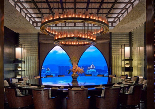 - Расположенный на 51 этаже гастрономический ресторан Lai Heen с пятью роскошными залами, украшенными ажурной резьбой и оригинальными произведениями искусства, отмечен звездой Мишлен и представляет шедевры современной кантонской и китайской кухни.