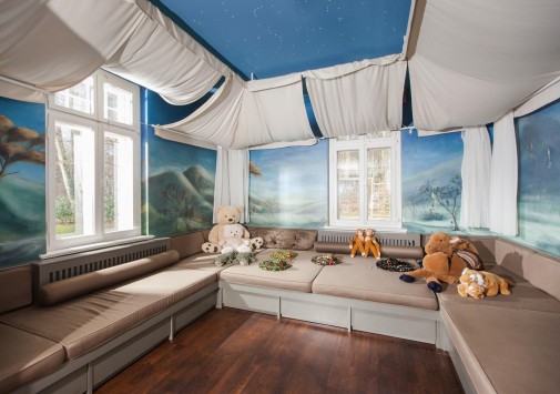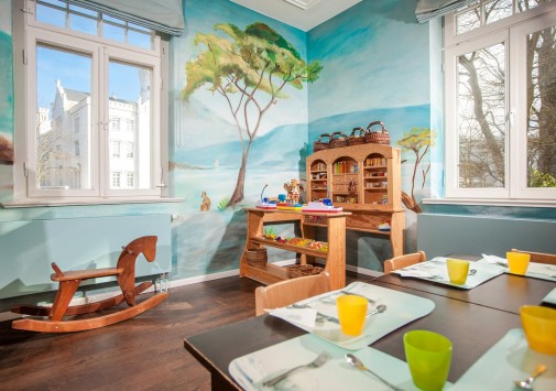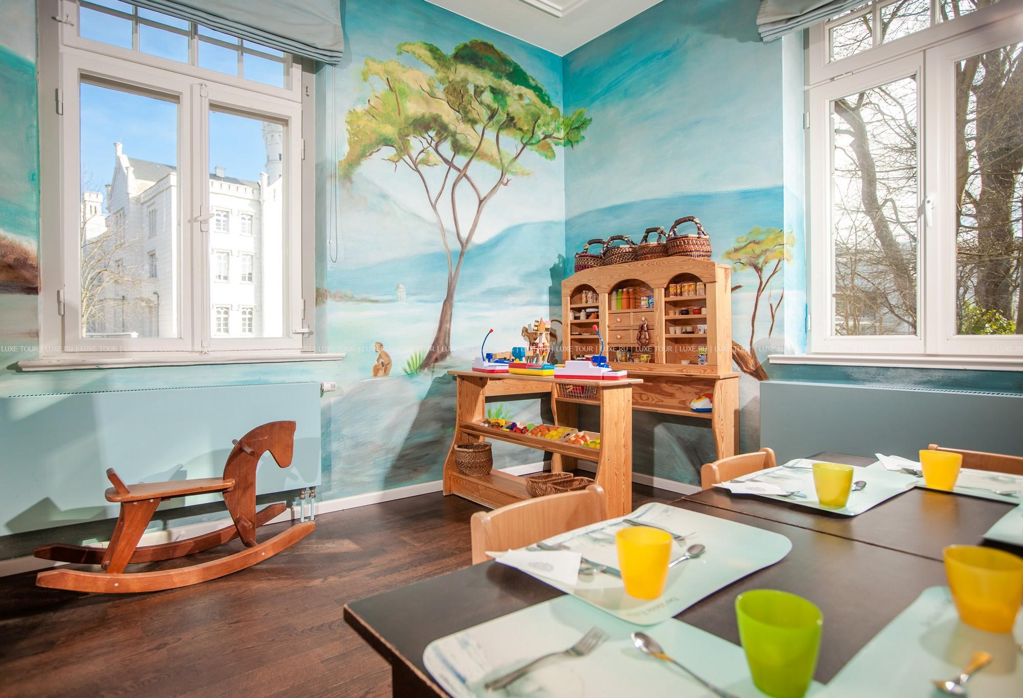 В комплексе созданы прекрасные условия для отдыха детей. Детский клуб предлагает увлекательные спортивные, развлекательные и познавательные мероприятия в течение всего дня для разных возрастных групп: до 2 лет, с 3 до 5 лет, с 6 до 11 лет и старше. В саду находится «Детская вилла», на 3 этажах которой маленькие гости найдут развлечения по своему вкусу – от джунглей на первом этаже и ковбойской страны на втором этаже, с балкона которого можно скатиться на горке, до зала с компьютерными играми, разместившегося на третьем этаже. В детском ресторане предлагается специальное меню, также возможны услуги няни.