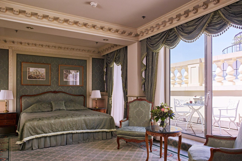 - В отеле 205 комфортабельных номеров различных категорий, включая 88 Superior Rooms, 36 Deluxe Rooms, 51 Executive Rooms, 19 Junior Suites, 3 Executive Suites, 4 Senior Suites, 3 Deluxe Suites и Presidential Suite. Все номера имеют элегантный интерьер, выполненный в классическом стиле, с удобной мебелью, красивыми драпировками, изысканной живописью на стенах.