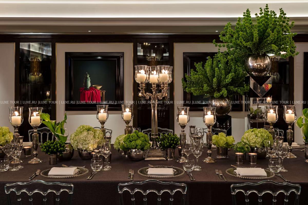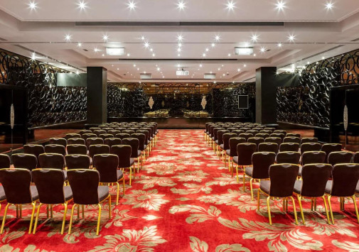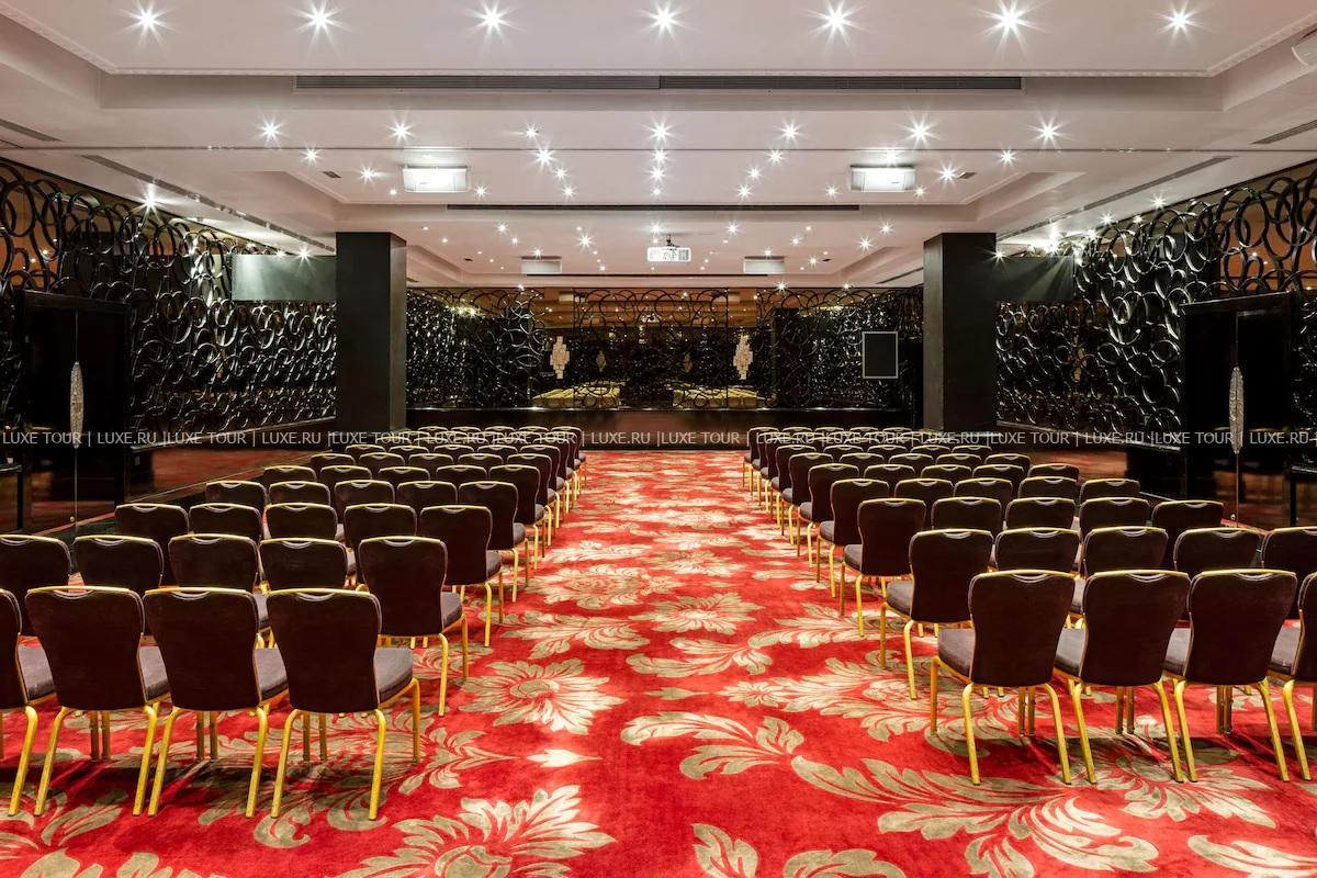 Для гостей – 16 залов для деловых и торжественных мероприятий, вмещающих до 370 человек, включая роскошный зал e Crystal Room вместимостью до 280 человек, кинозал на 200 мест, бизнес-центр, бесплатный Wi-Fi, открытая терраса на 50 мест во внутреннем дворе, парковка, аренда машин, лимузин-сервис, услуги дворецкого, услуги консьержа, услуги прачечной и химчистки.