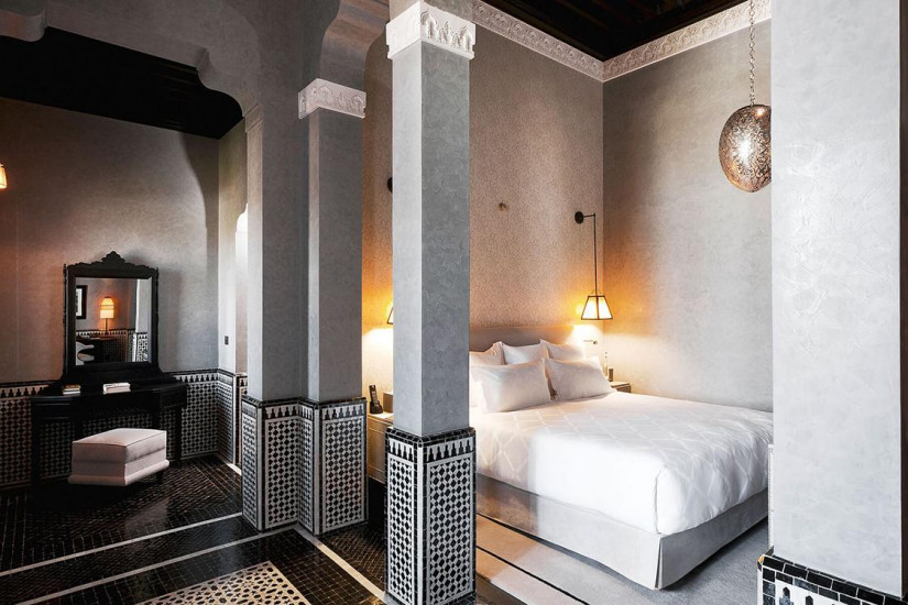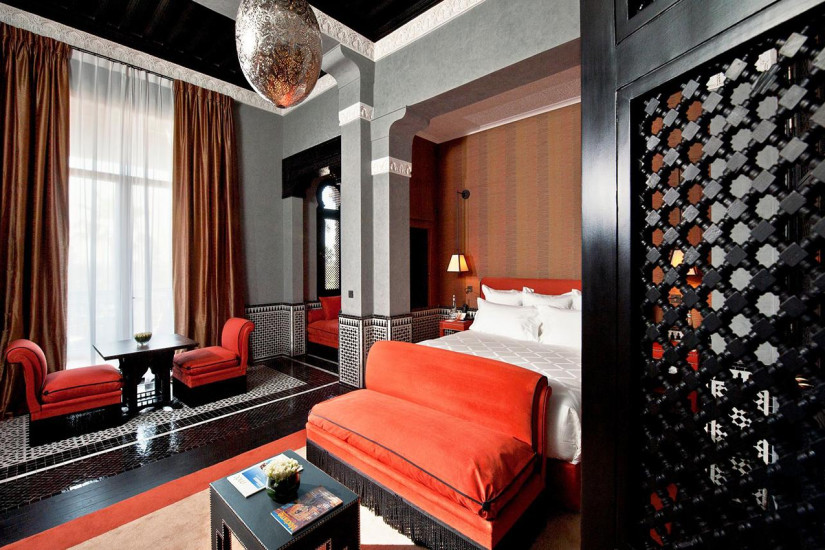 В отеле 56 номеров различных категорий, включая Classic Room, Superior Room, Deluxe Room, Suite и 5 отдельно стоящих риад. Интерьеры номеров, созданные известным дизайнером Жаком Гарсиа, сочетают роскошь марокканского дворца и элегантный современный декор: отделка из резного дерева и бронзы, изысканные ткани, натуральная кожа, изумительная мозаика и изящные произведения искусства местных мастеров. С террас номеров открывается великолепный вид на пышные сады, сверкающий бассейн и величественные Атласские горы.