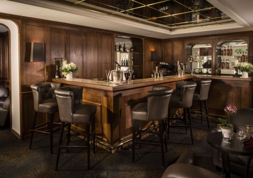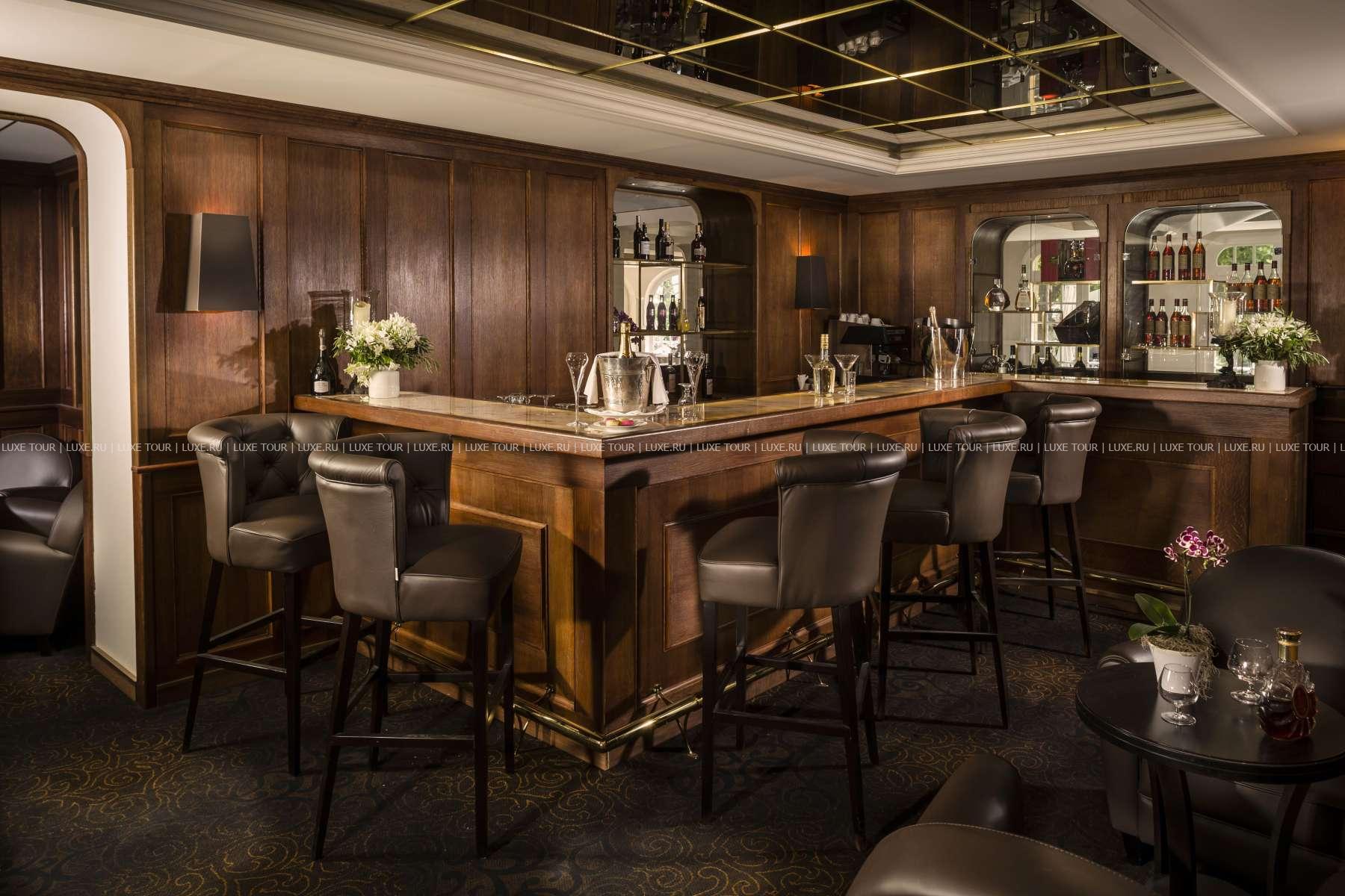 Бар с отделкой из деревянных панелей воссоздает атмосферу английского клуба и предлагает широкий выбор аперитивов, коктейлей и легких закусок.