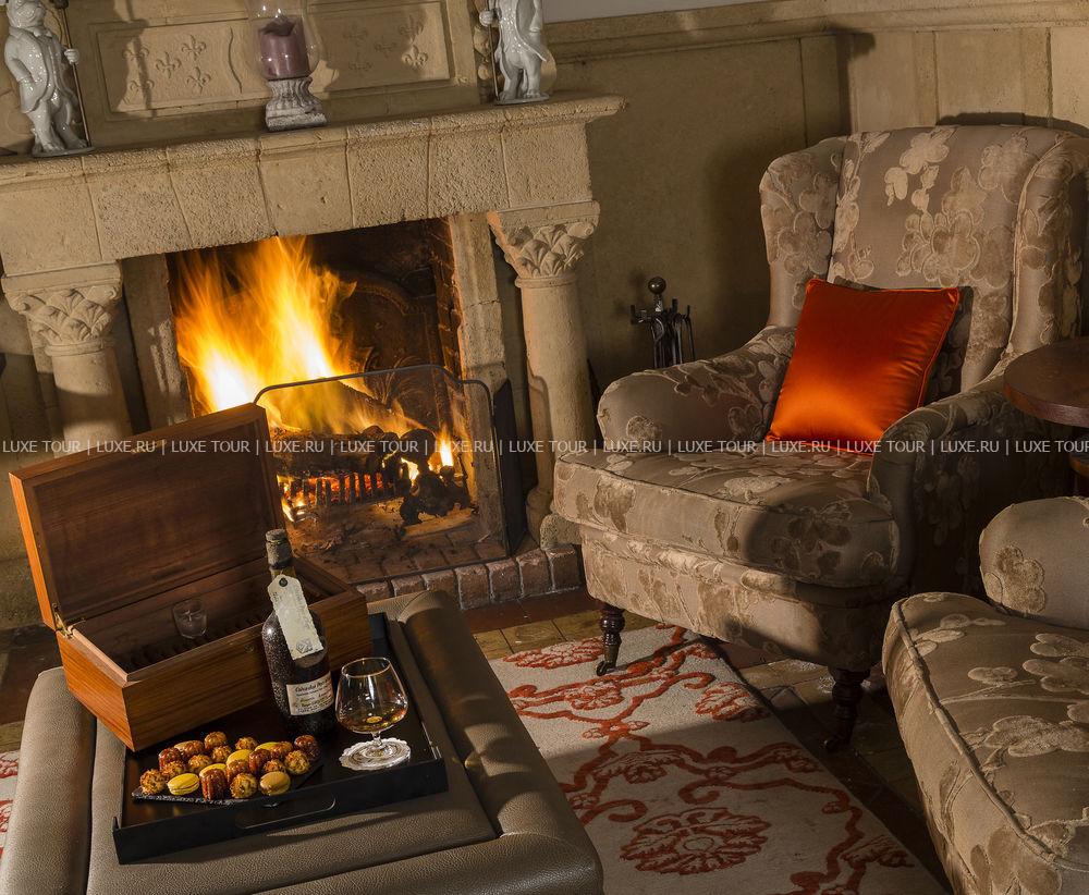За чашечкой чая или аперитивом можно также отдохнуть в стильном лаундж-баре или в гостиной со старинным камином.