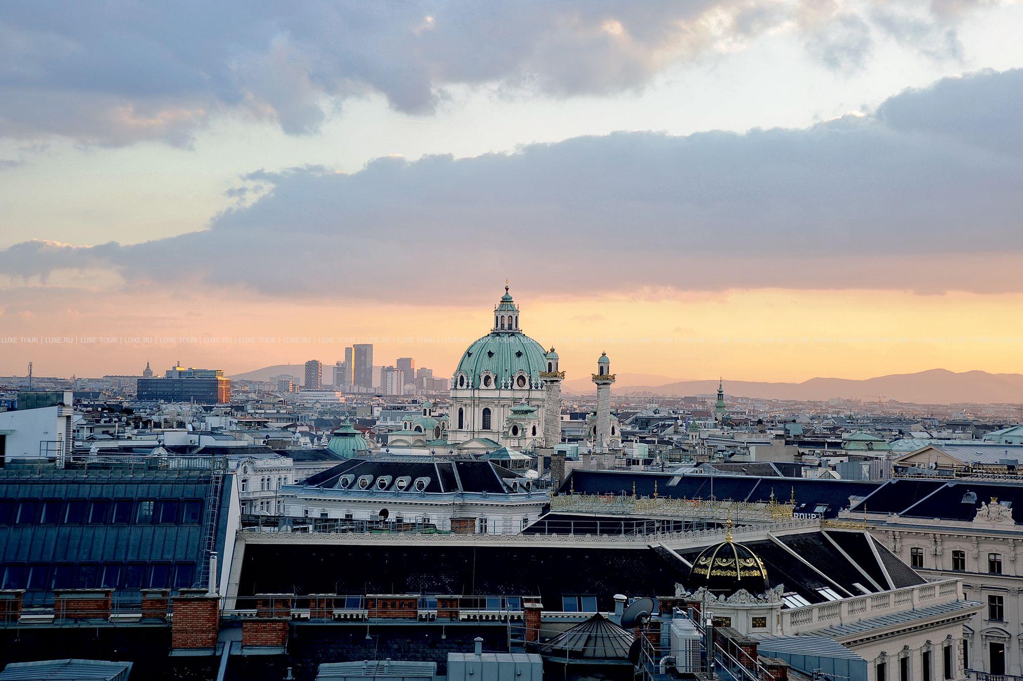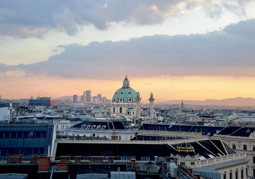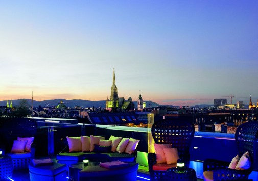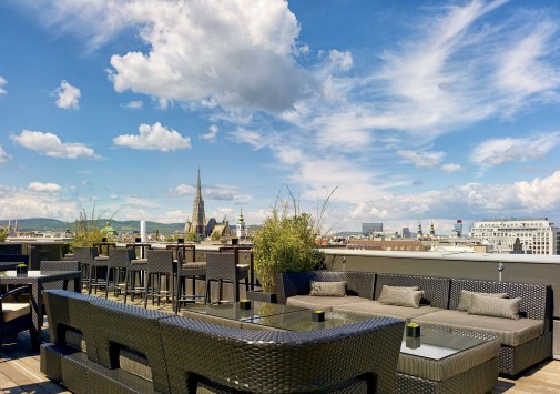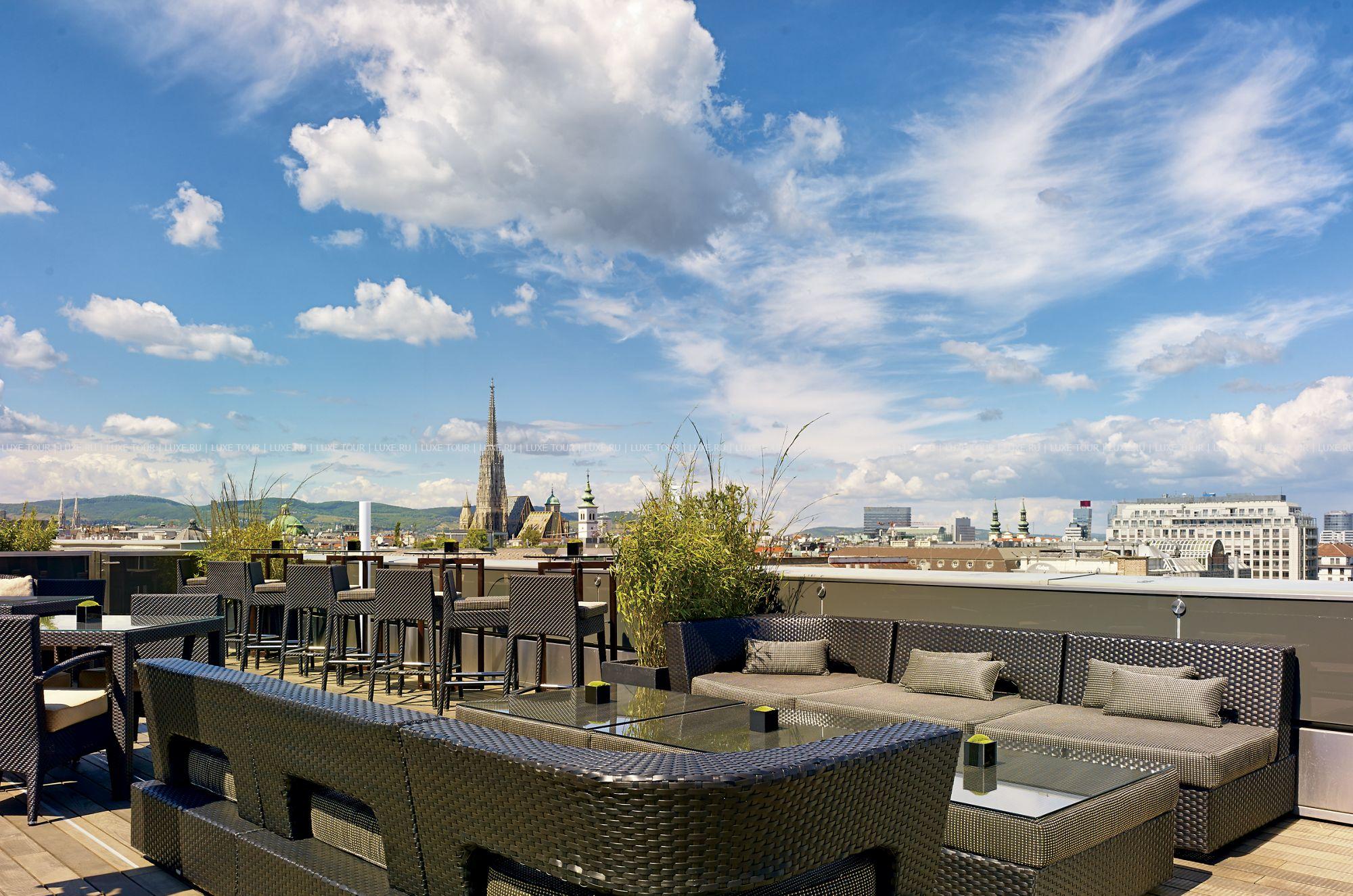 На крыше отеля расположен летний лаундж-бар с потрясающим панорамным видом на Вену.