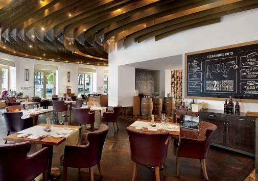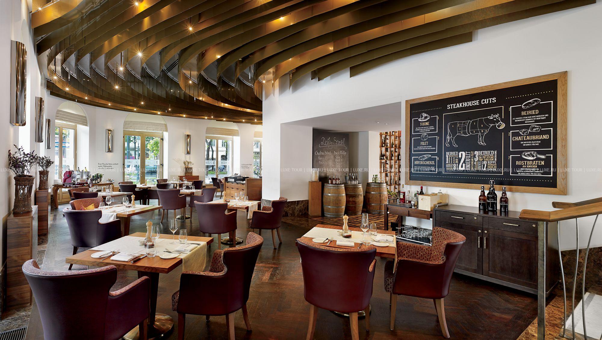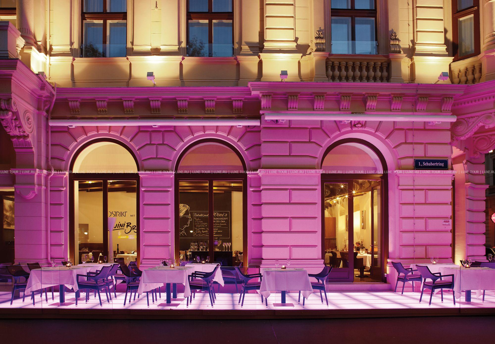 Dstrikt Steakhouse — элегантный ресторан с летней террасой на знаменитом бульваре Рингштрассе, предлагает классические австрийские блюда, приготовленные из отборных местных продуктов. Также во время «шефских столов» можно отведать авторские блюда от известного шеф-повара ресторана — Вини Брюггера.