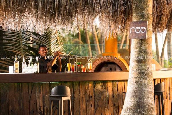 Raa — коктейль-бар, расположенный в саду у бассейна.