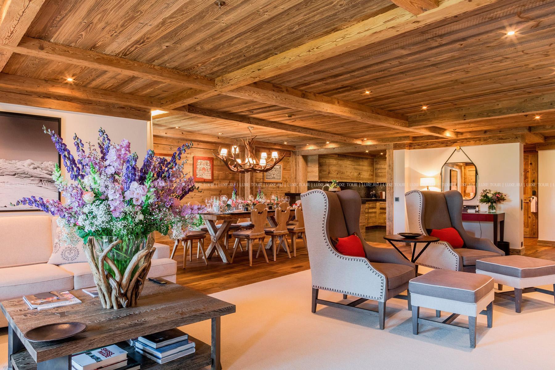 Фешенебельный The Alpina Gstaad Швейцария расположен всего в 10 минутах ходьбы от центрального променада Гштаада, в окружении величественных гор и чудесного сада, разбитого по проекту знаменитого ландшафтного дизайнера Жан Мюса. Бутик-отель прекрасно сочетает ультрасовременный европейский шик с очарованием Бернского региона и старинного Гштаада. Интерьеры, созданные известными дизайнерами, представляют эклектику модных тенденций и уют альпийского дома: резные панели из хвойных пород дерева, антикварная мебель, камины, выложенные из камня. При этом гостей ждет высочайший уровень сервиса и комфорта: от роскошных номеров с балконами, выходящими на Бернские Альпы и ледник Дьяблере, до ресторанов высокой кухни, стильного бара, винного погреба с богатой коллекцией раритетных вин и сигарной гостиной. Ещё одна гордость отеля – уникальный комплекс Six Senses Spa, где созданы первоклассные условия для релаксации: крытый и открытый бассейны, зона гидротерапии, комната для соляных ингаляций, фитнес-центр и 12 прекрасно оснащенных процедурных кабинетов. К услугам гостей также кинотеатр, мини-клуб с игровой комнатой, залы для деловых и торжественных мероприятий и множество других услуг.