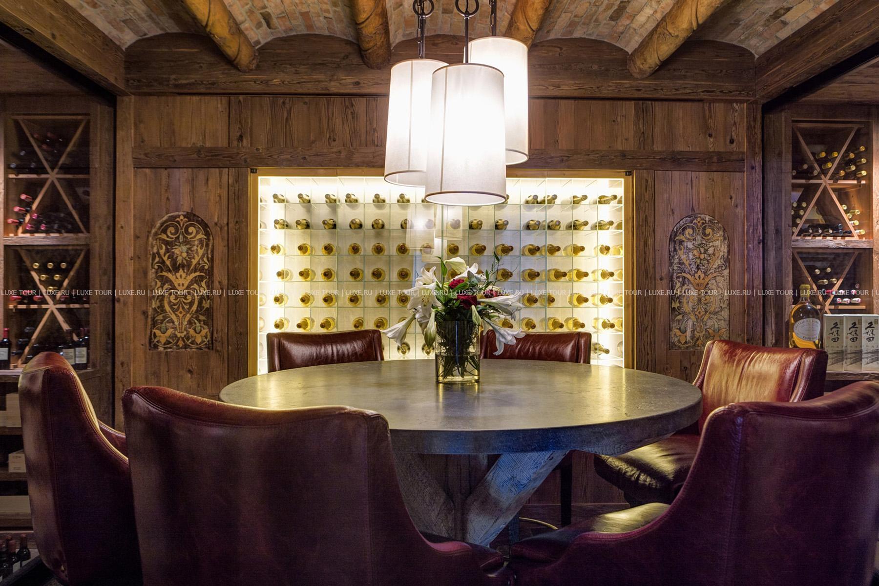 - В винном погребе, где хранится богатая коллекция из 1700 бутылок марочных вин со всего мира, устраиваются дегустации вин.
