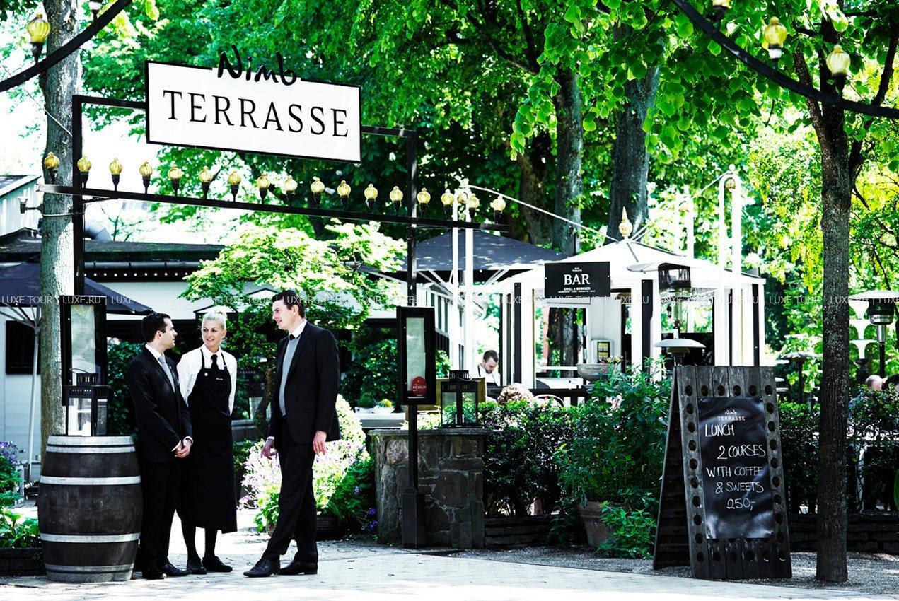Nimb Terrasse — исторический ресторан, старейший в Тиволи, был открыт в 1877 году основателями отеля, семьей Нимб, и называвшийся Divan 2, а также Nimb´s Porch. Меню ресторана включает легкие сезонные блюда из свежайших местных продуктов.
