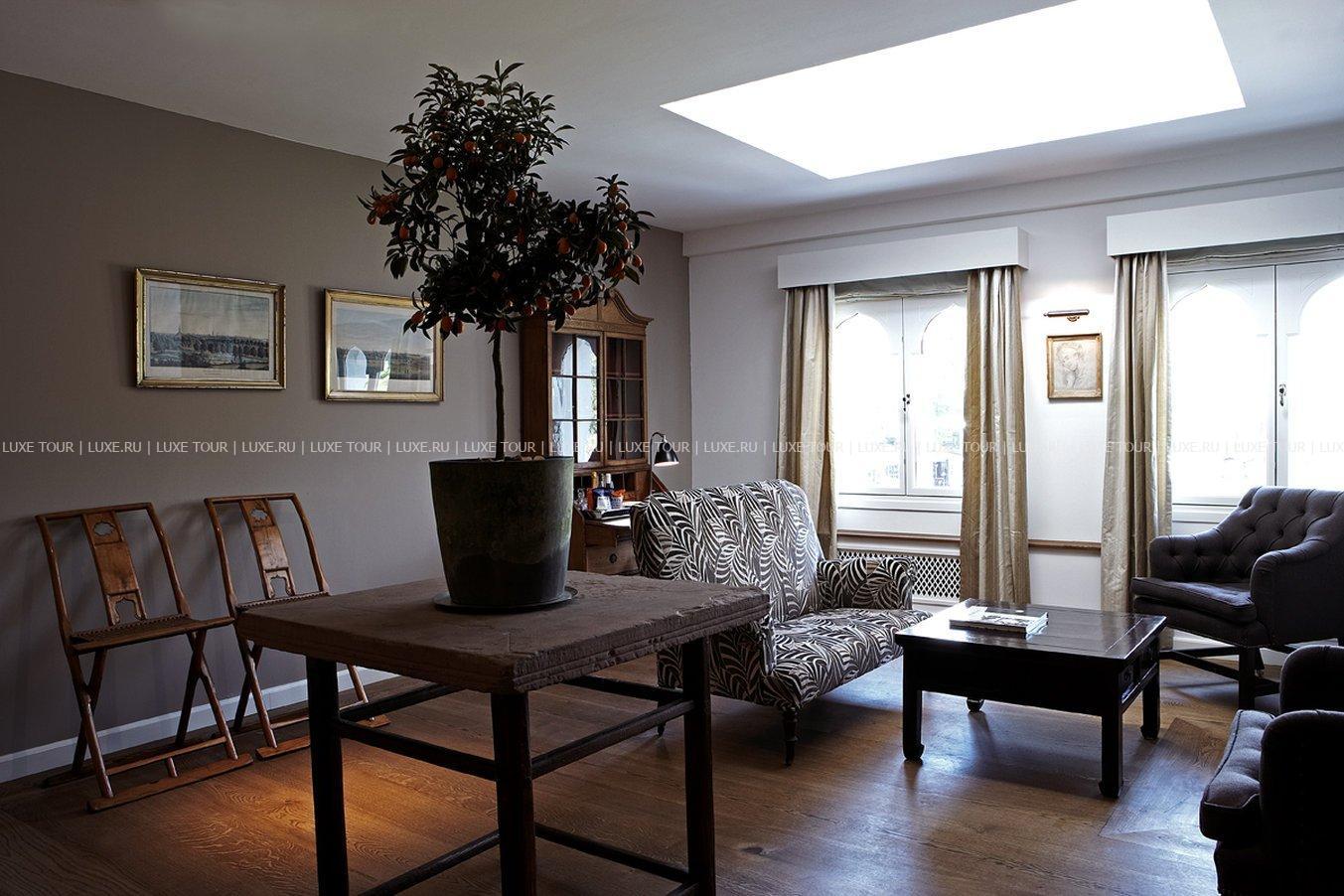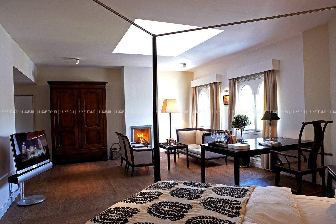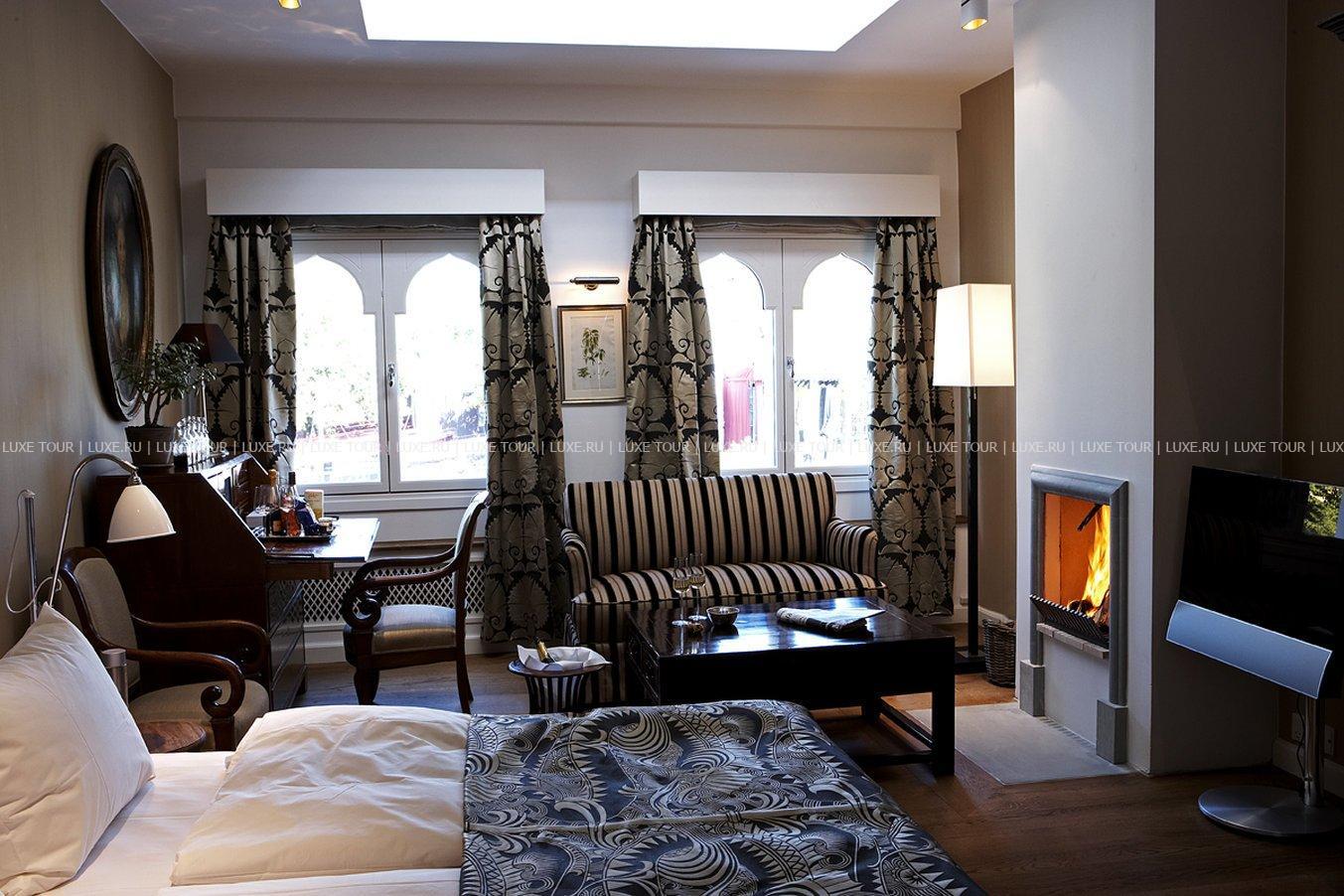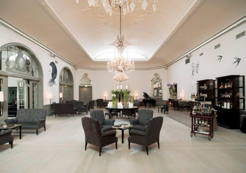 Уютный бар расположен в элегантном зале с камином и хрустальными люстрами, где приятно отдохнуть за изысканным напитком.