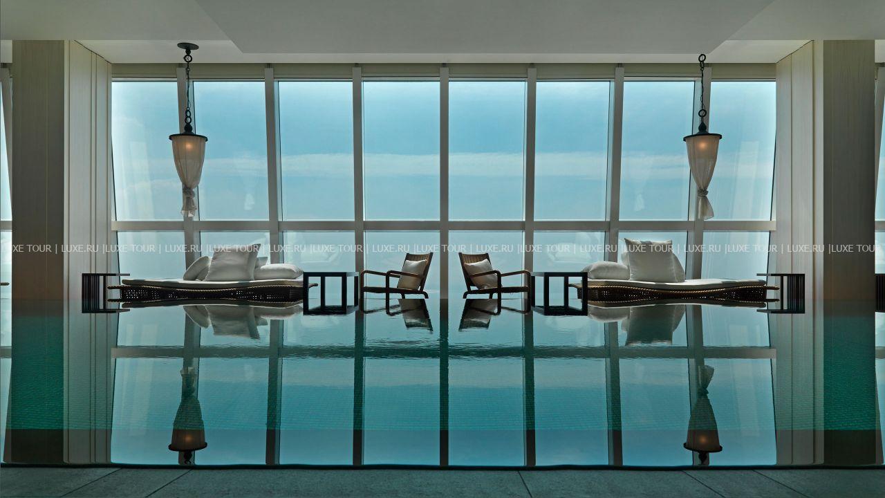На 85 этаже располагается великолепный оздоровительный центр Water’s Edge, в котором имеется: 20-метровый крытый бассейн с панорамным видом на город, джакузи, парная, фитнес-зал, площадка для занятий tai-chi и 2 процедурных кабинета, где предлагаются процедуры, основанные на китайских традициях.