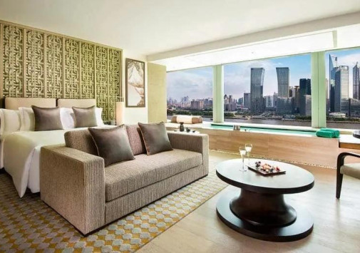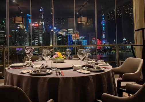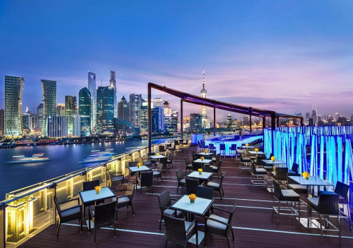 • Стильный бар Tops с открытой террасой на крыше и потрясающим панорамным видом на набережную Вайтань и реку Хуанпу, предлагает широкий выбор коктейлей и изысканных тапасов.